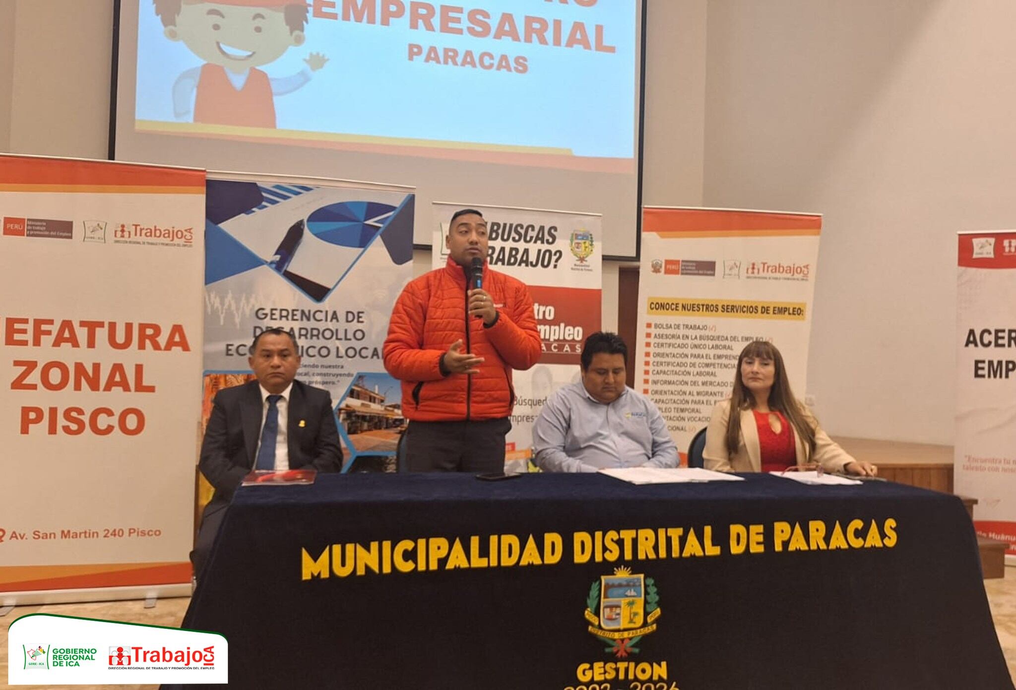 Estuvieron presentes el director regional de Trabajo, Abog. Alonso Bendezú Rezkalah, el Sr. Omar Eladio Bohórquez Huertas, alcalde de la Municipalidad Distrital de Paracas, la gerenta de Desarrollo Económico C.P.C. Liliana Ravello y el Abog Luis Chacaliaza Vergara, jefe zonal de Trabajo de Pisco.