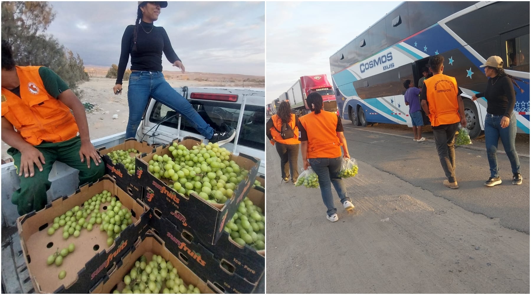 La Subgerencia de Gestión de Riesgo de Desastres de la Municipalidad Provincial de Ica coordinó con la empresa privada Sun Fruits Exports S.A. la entrega de uva de mesa para los viajeros afectados por la emergencia.