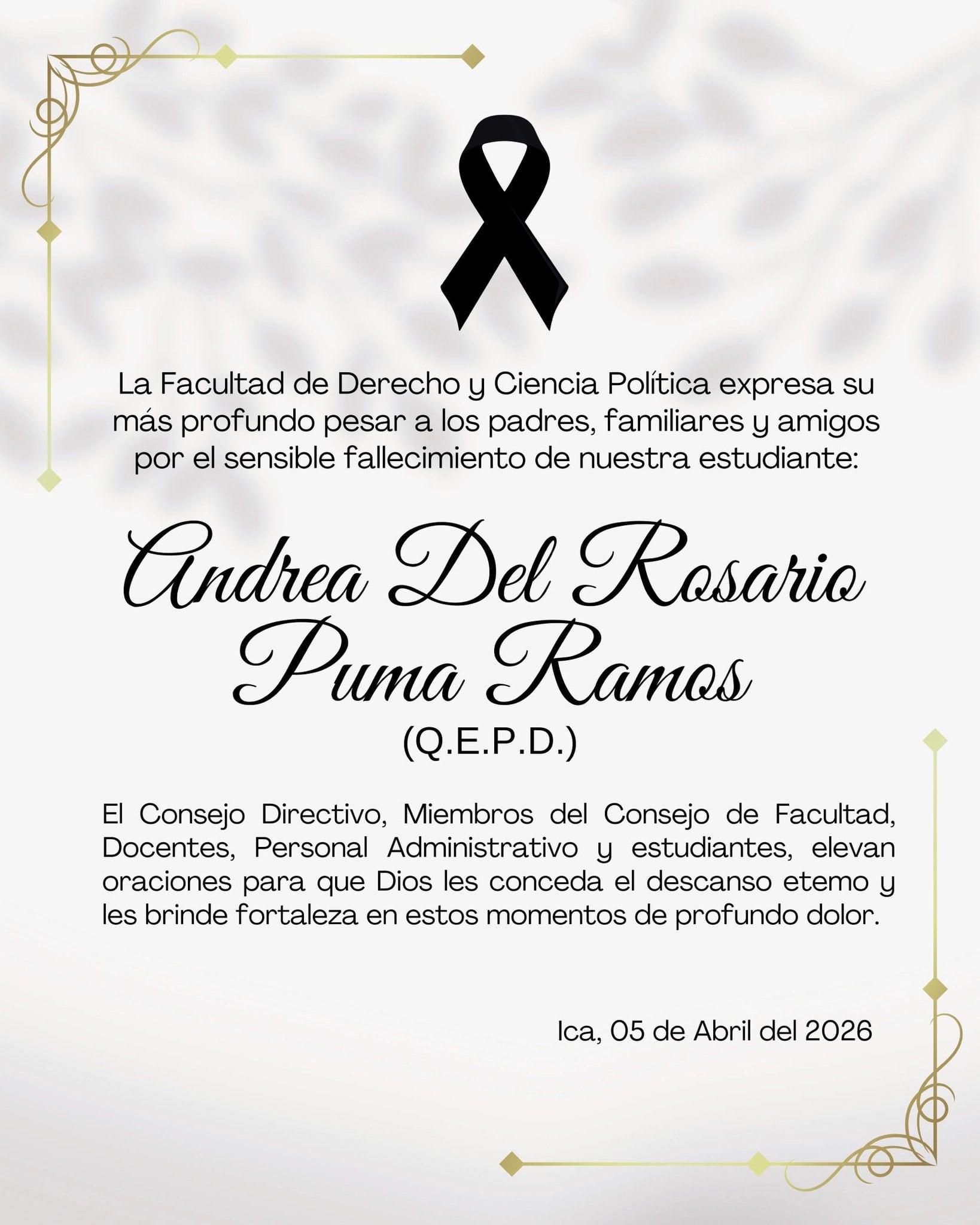 Un accidente de tránsito con consecuencias fatales se registró la tarde del sábado 4 de abril en la entrada del distrito de Los Aquijes, en la provincia de Ica, donde Andrea del Rosario Puma Ramos, de 21 años, falleció tras una colisión entre una motocicleta y un automóvil.