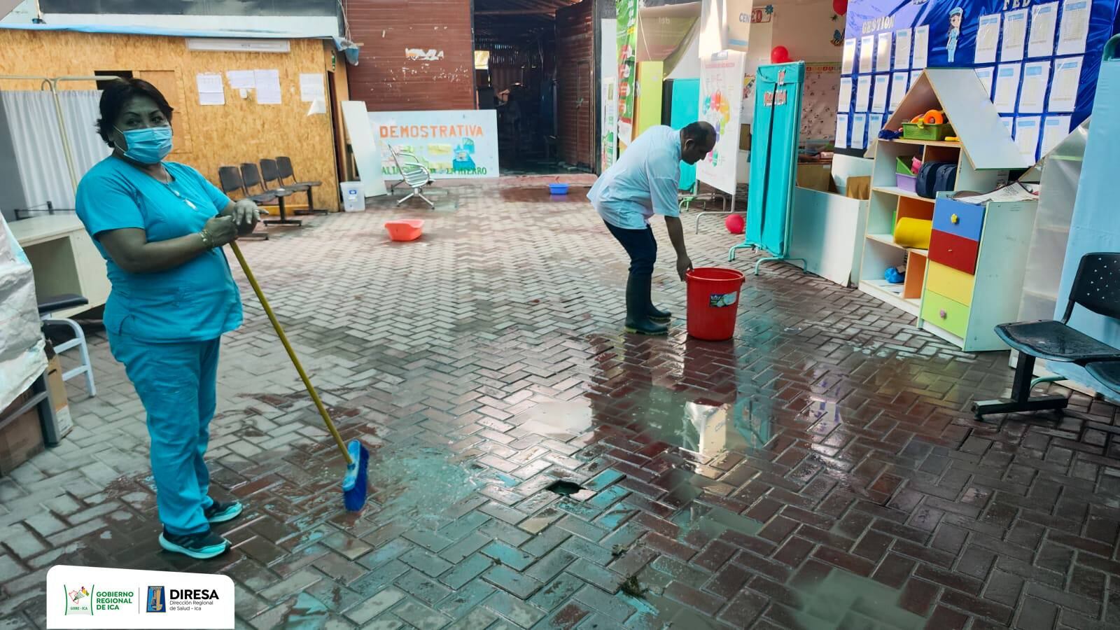 Para garantizar la continuidad operativa de los servicios de salud y el bienestar del personal de salud, el director adjunto de la Diresa Ica; Martin Tito Paucar, visitó el Centro de salud Parcona para verificar in situ el estado de afectación de los ambientes y servicios ocasionados por la fuente lluvia que azotó algunos sectores de la provincia de Ica.