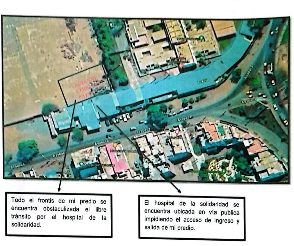 La ciudadana Arianne Coronel Pazos ha presentado una demanda de Habeas Corps en contra del Hospital de la Solidaridad, ya que su predio ubicado en la avenida Ayabaca (Ica), ha sido obstaculizado en su totalidad para el libre tránsito.