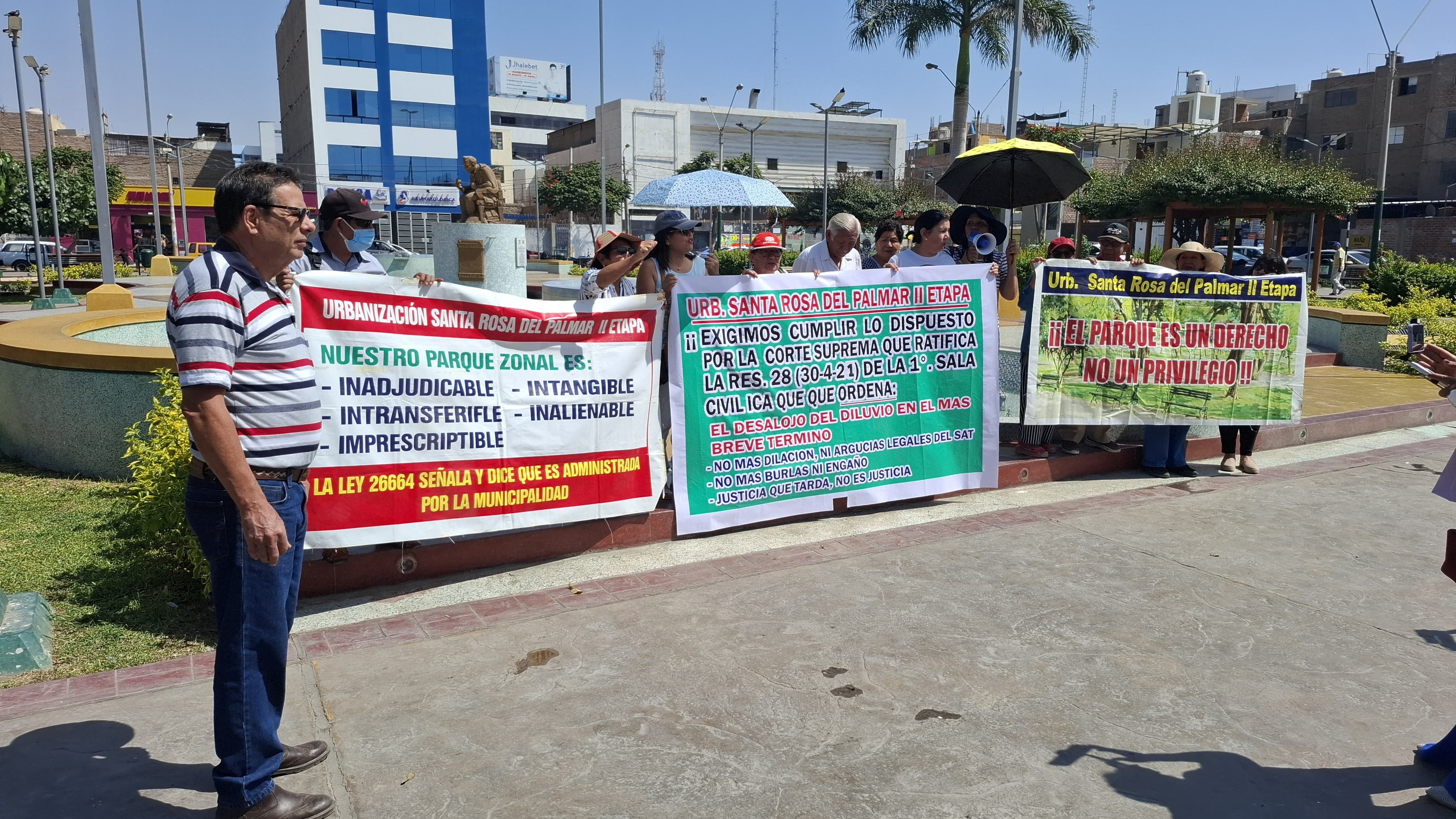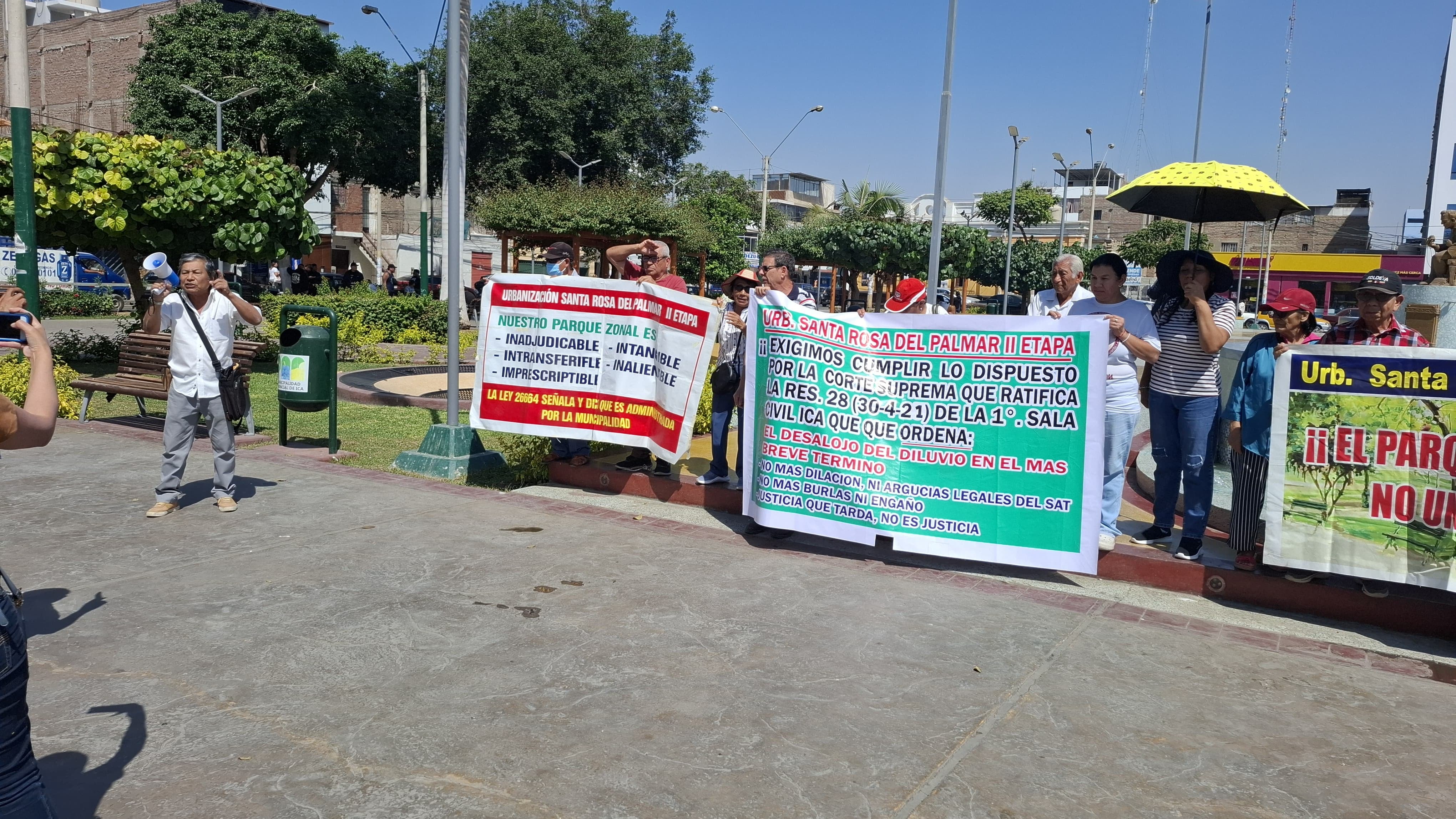 Familias de la II etapa de la urbanización Santa Rosa del Palmar, en la provincia de Ica, protestaron en los exteriores del Poder Judicial de Ica, exigiendo el cumplimento del desalojo de las invasiones en el sector conocido como Villa El Diluvio.