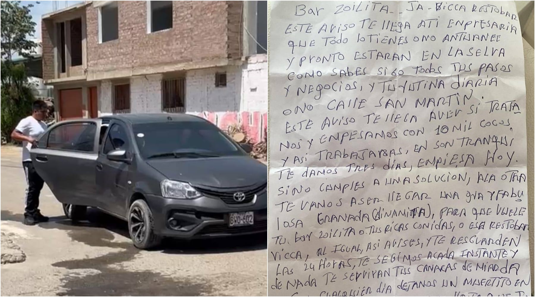 La investigación se originó tras la denuncia de un comerciante de un restobar del distrito de Pachacútec, quien recibió una nota extorsiva. En la carta, los extorsionadores exigían el pago de 10 mil soles “para empezar” y advertían que, de no entregar el dinero, atentarían contra el negocio utilizando granadas y dinamita.