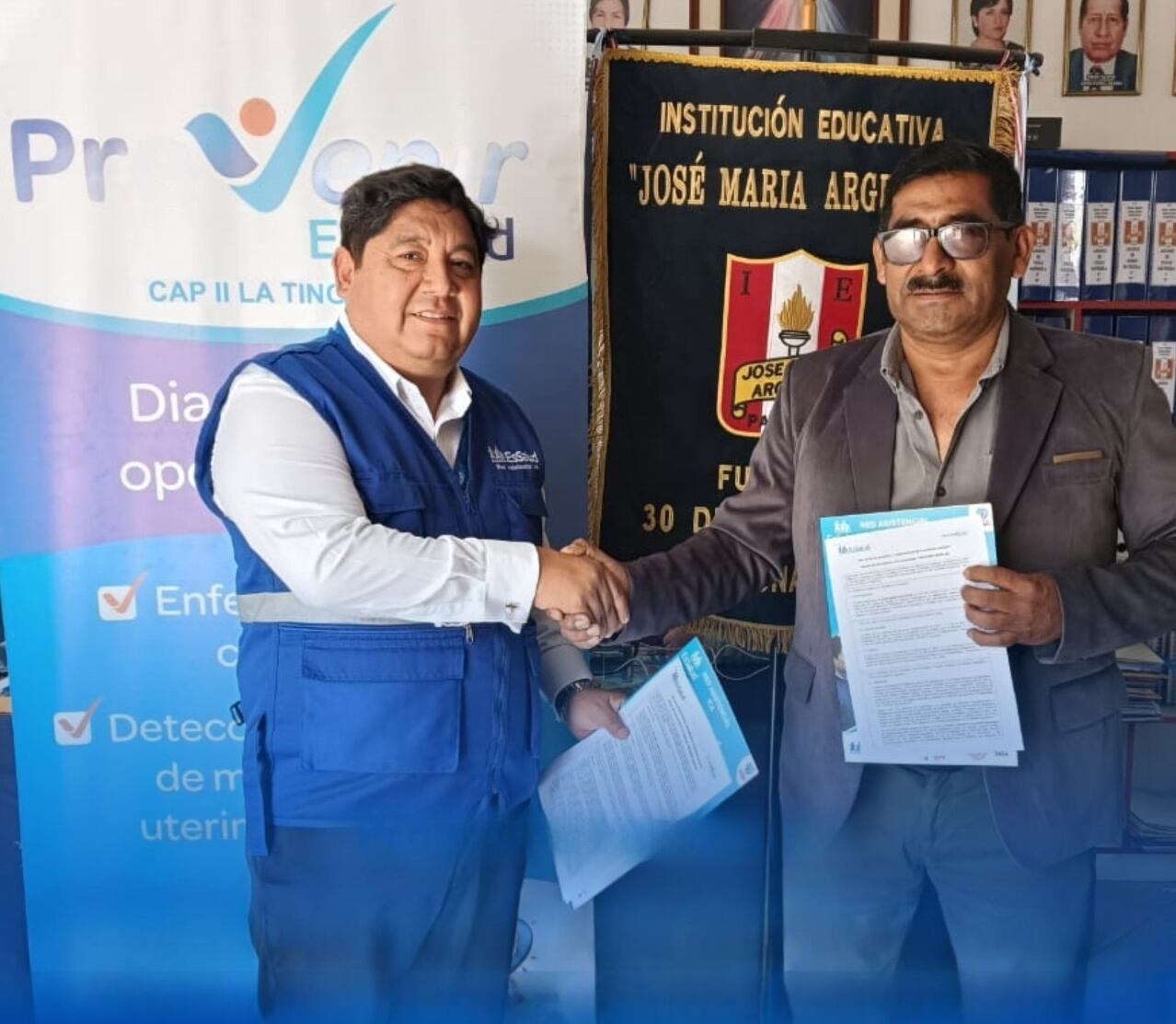 El programa se enfoca en la detección temprana de enfermedades crónicas no transmisibles como diabetes, hipertensión arterial y síndrome metabólico, así como en el despistaje de cáncer de mama, próstata y cuello uterino. La firma del acuerdo estuvo a cargo del Lic. Juan Hernández Chacaliaza, director de la IE José María Arguedas, y el Dr. Jesús Gallegos Ormeño, director del CAP II La Tinguiña.