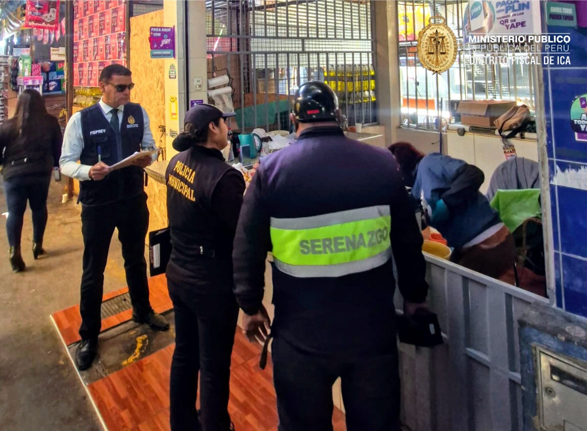 El operativo estuvo liderado por el fiscal Julio César Salas Cruces, y contó con el apoyo de la Subgerencia de Seguridad Ciudadana y la Policía Municipal de la Municipalidad Provincial de Ica.