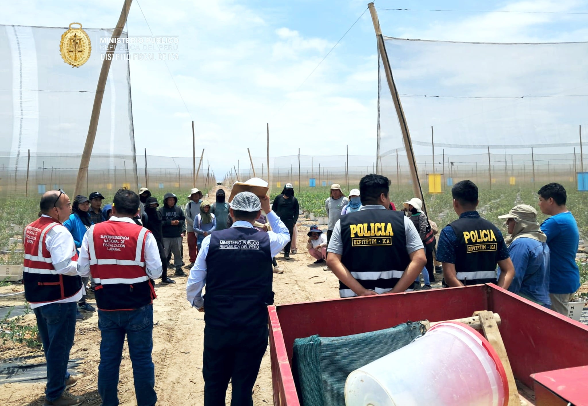 Durante el operativo, el representante del Ministerio Público, en coordinación con efectivos de la Policía Nacional del Perú - especializados en delitos de trata de personas y personal de la Superintendencia Nacional de Fiscalización Laboral (SUNAFIL), inspeccionó diversas áreas de cultivo, así como una planta de procesamiento de uva y sembríos de arándanos.