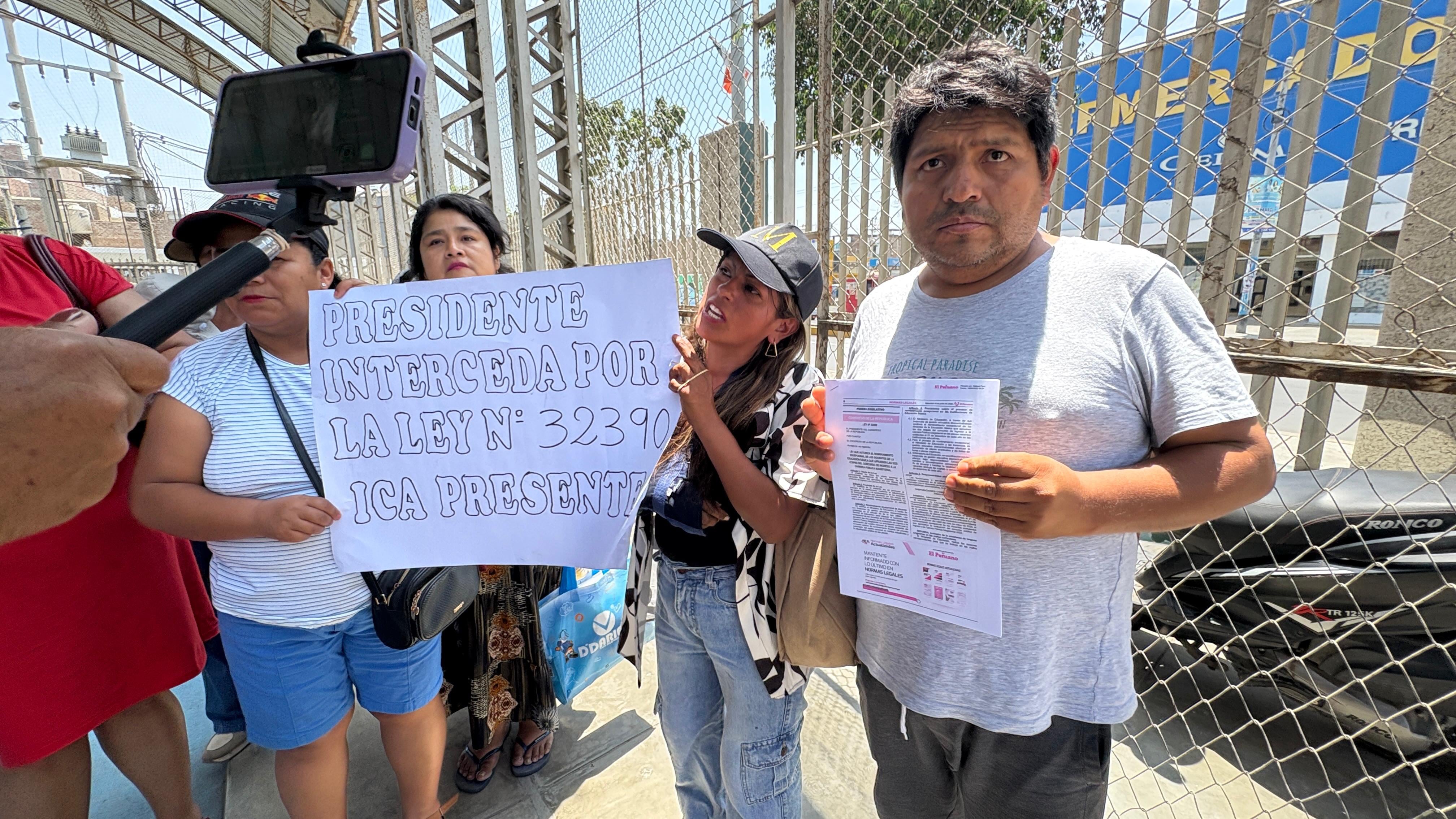 “Somo cerca de mil maestros en toda la región Ica, que venimos luchando desde el 2022. Hemos aprobado las evaluaciones del Ministerio de Educación y logramos que se apruebe nuestra ley, la 32390, que nos autoriza a ingresar a la carrera pública magisterial. Solo pedimos que se ejecute”, señaló Ciro Gómez Chávez, coordinador regional de los maestros en Ica.