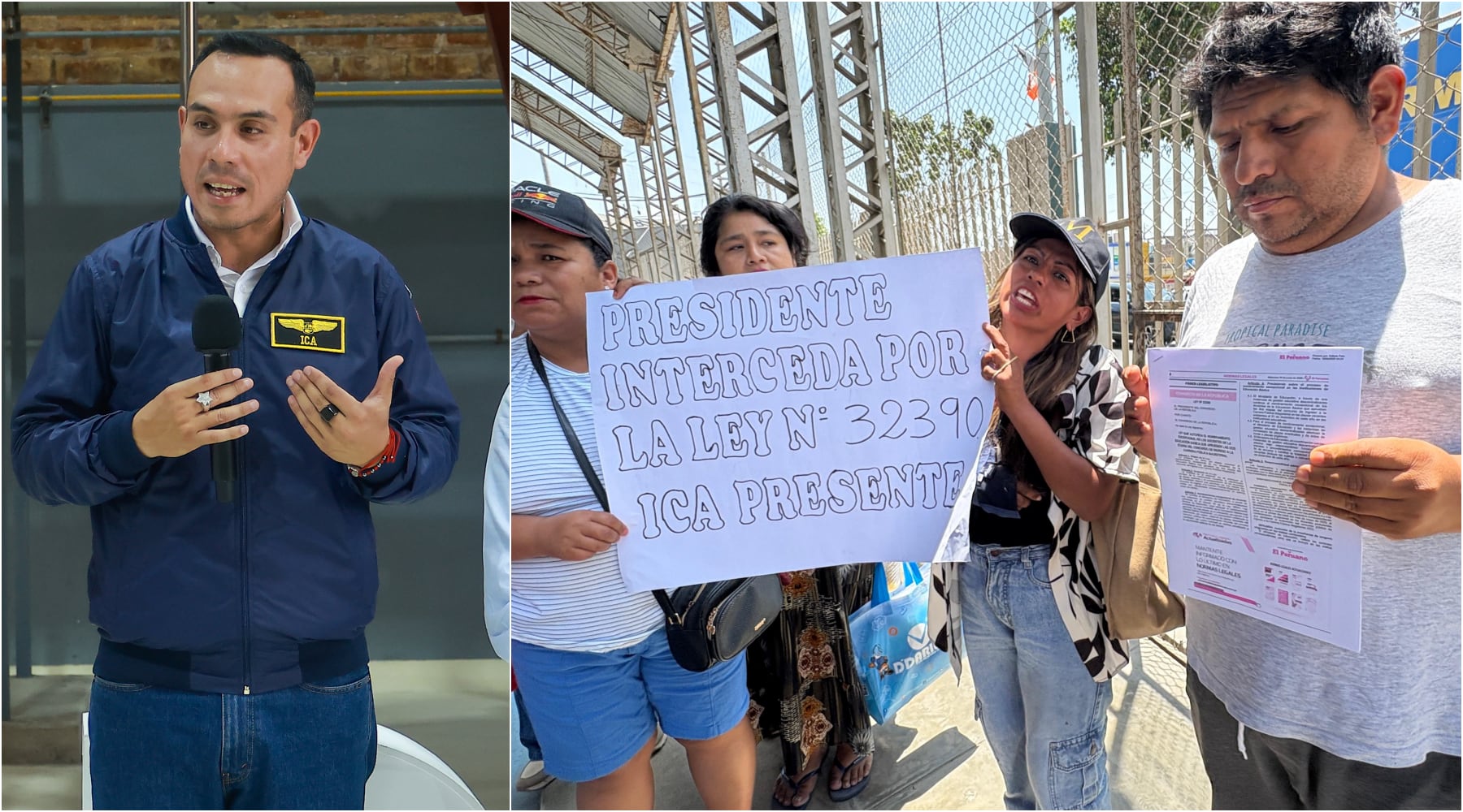 En paralelo, docentes de la región Ica se concentraron para exigir al presidente de la República, José Jerí, que se cumpla la Ley N º 32390, que autoriza el nombramiento excepcional de maestros de educación básica que aprobaron los concursos del Ministerio de Educación.
