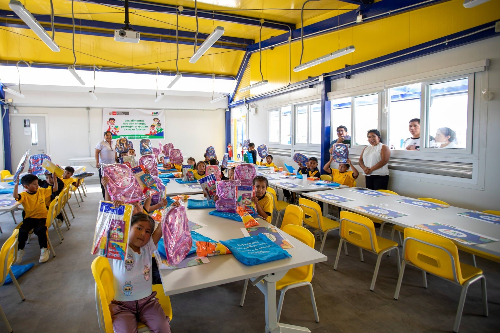 La infraestructura de “Las Palmeras” ha sido diseñada para ofrecer un entorno integral de aprendizaje. Cuenta con cuatro aulas amplias y completamente equipadas, cocina y almacén destinados a los programas de alimentación escolar, áreas administrativas y sala de docentes, así como sistema de cámaras de seguridad que garantiza un entorno seguro para los alumnos. Además, se incorporaron espacios deportivos y áreas de recreación para fomentar el desarrollo físico y social de los estudiantes.
