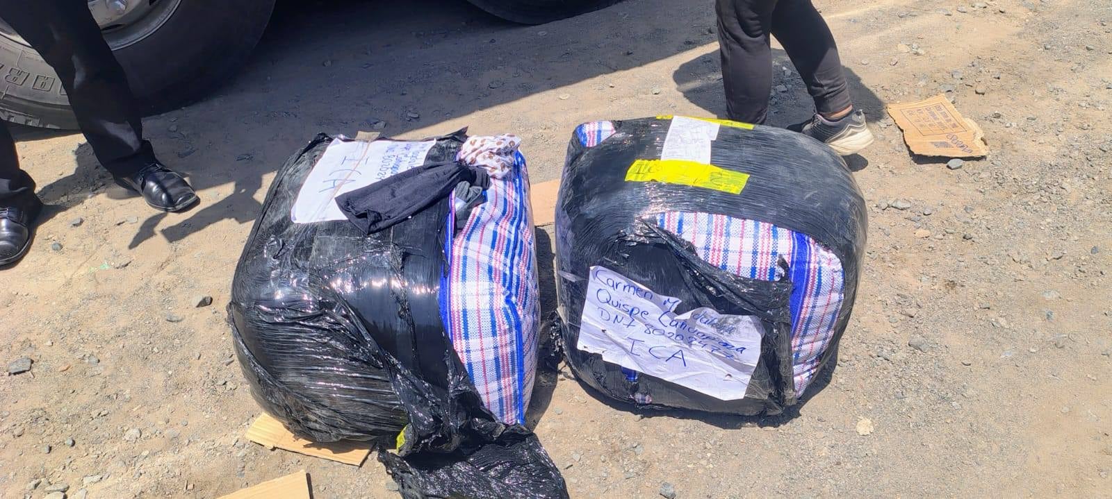Durante la inspección en las bodegas del vehículo, los efectivos hallaron dos bultos redondos con ropa extranjera de segundo uso, que eran trasladados como encomienda. Según la documentación revisada, la mercadería tenía como remitente a Carmen Quispe Cacuapaza.