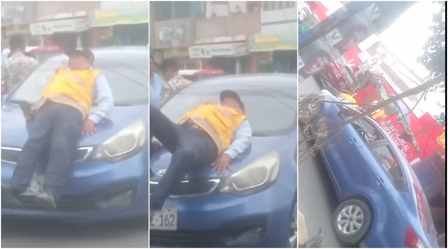 El incidente ocurrió cuando el trabajador, que labora en la Gerencia de Transporte y es conocido por su chaleco amarillo, subió al capot del automóvil intervenido para impedir que el conductor se diera a la fuga.