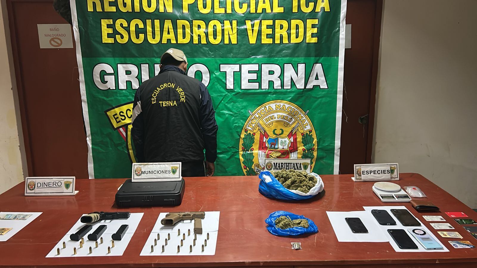 También se incautaron dos armas de fuego: un arma marca Taurus, serie ADC109029, con tres cacerinas y diez municiones; y un arma marca Glock, serie BWSY764, con una cacerina abastecida con 17 municiones, un celular iPhone 15, un iPhone 7, dos celulares Xiaomi Redmi, un celular Honor Matrix, además de dinero en efectivo consistente en un billete de S/ 100.00 y un billete de S/ 20.00.