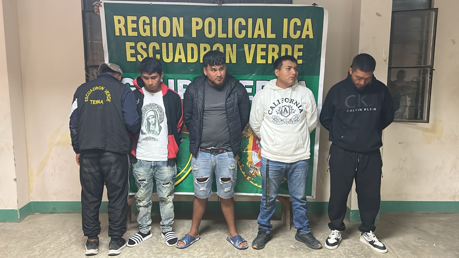 Un operativo ejecutado por el Escuadrón Verde–Terna de la Región Policial Ica permitió la detención de cuatro presuntos integrantes de la banda criminal Los Salvajes de la CPS.