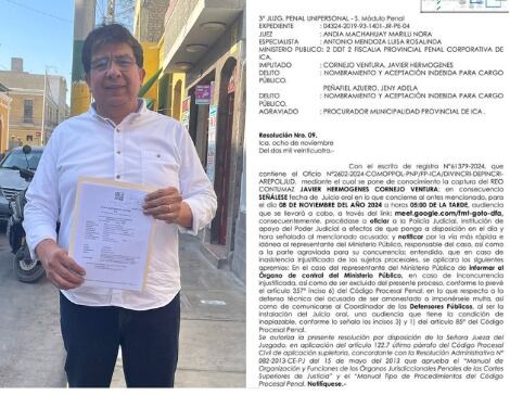 El caso, que se encuentra en el Tercer Juzgado Penal Unipersonal del Módulo Penal de Ica a cargo de la jueza Marilú Nora Andía Machahuay, señala que Cornejo nombró a Peñafiel Azuero sin verificar si cumplía con los requisitos legales exigidos para el puesto.
