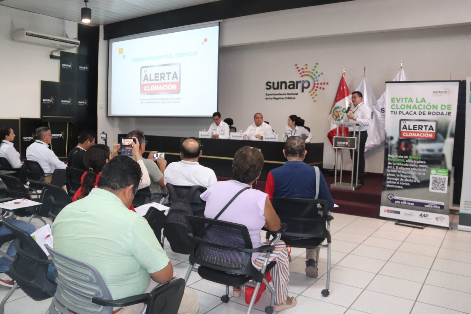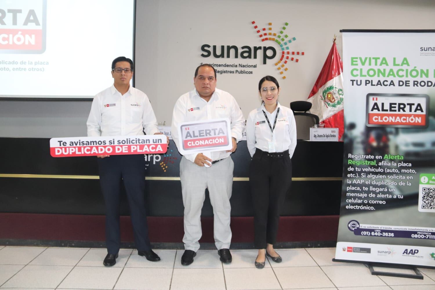 Contribuyendo a la seguridad de la ciudadanía, la Superintendencia Nacional de los Registros Públicos (Sunarp), en alianza estratégica con la Asociación Automotriz del Perú (AAP), presenta su nuevo servicio gratuito denominado “Alerta Clonación”, concebido para la prevención de la clonación de placas vehiculares.