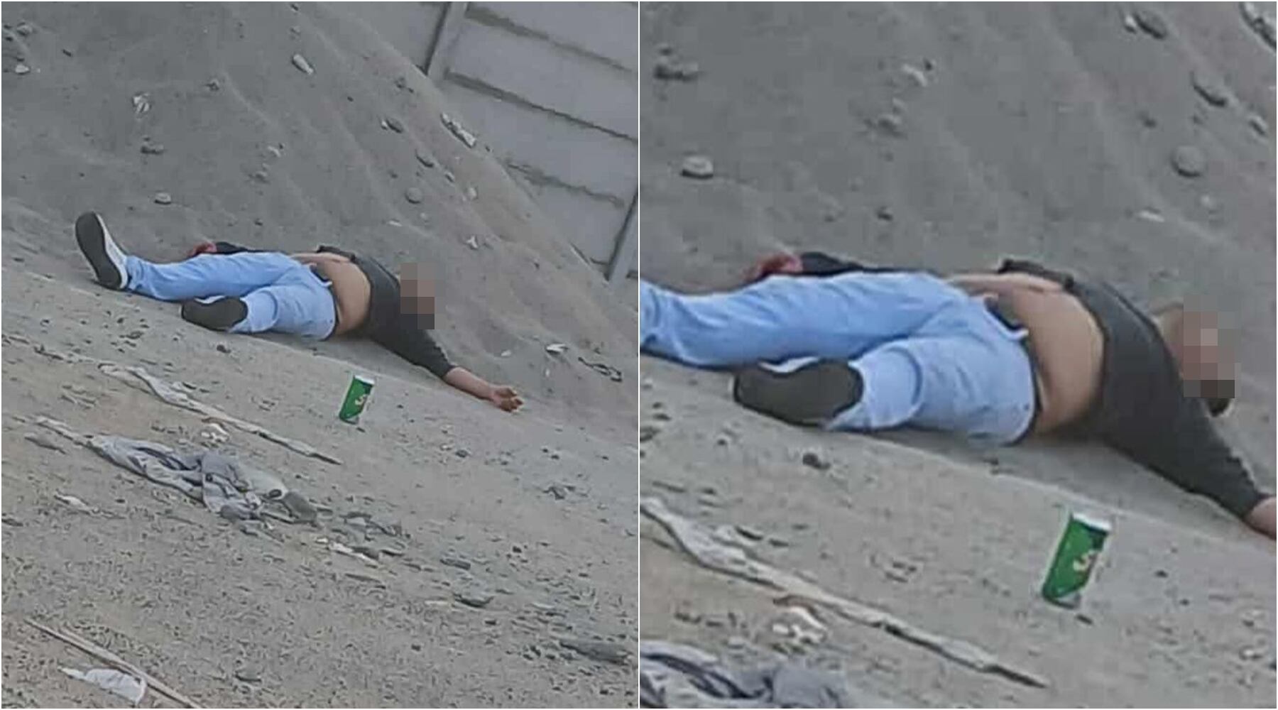 El ciudadano vestía una pantalón jean, un polo negro y zapatillas blancas y en un lado cercano se encontraba un lata de cerveza, por lo que se presume estuvo consumiendo bebidas alcohólicas. Los pobladores reportaron que no reaccionaba ante los llamados de la gente y estaba dopado bajo los efectos de algún producto barbitúrico.