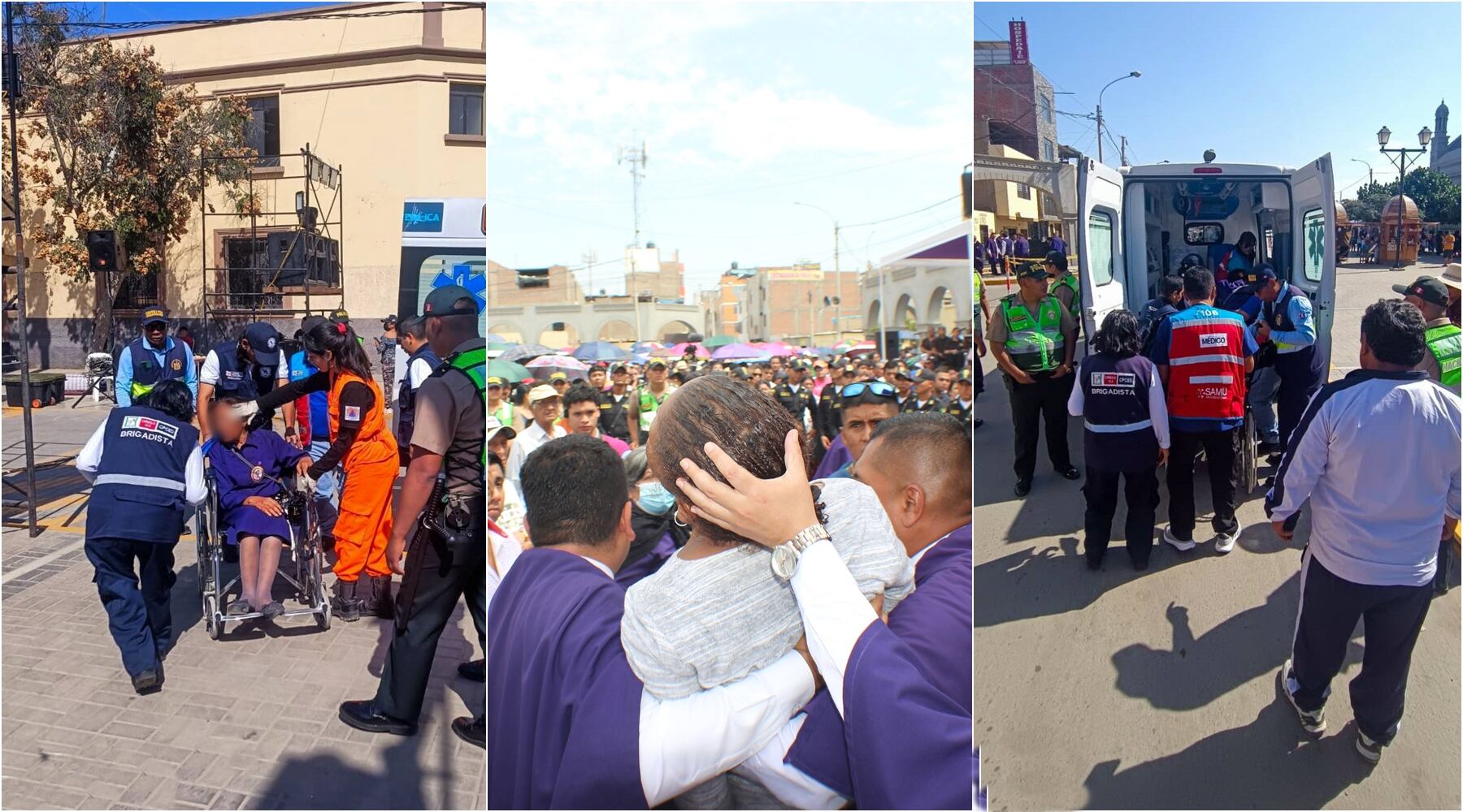 Durante la procesión del Señor de Luren, brigadistas de salud instalaron módulos de atención en los exteriores de la iglesia del mismo nombre para refrescar a los feligreses y evitar golpes de calor.