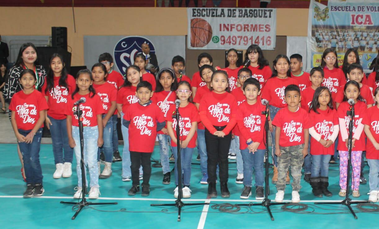 En la actividad se presentó un coro de niños y adultos dirigido por la soprano del Oasis de América, Akemy Bautista, que inició cantando el Himno Nacional, posteriormente se realizaron actos artísticos con danzas típicas de distintas regiones del Perú a cargo de jóvenes, quienes demostraron su talento en las instalaciones del colegio San Luis Gonzaga.