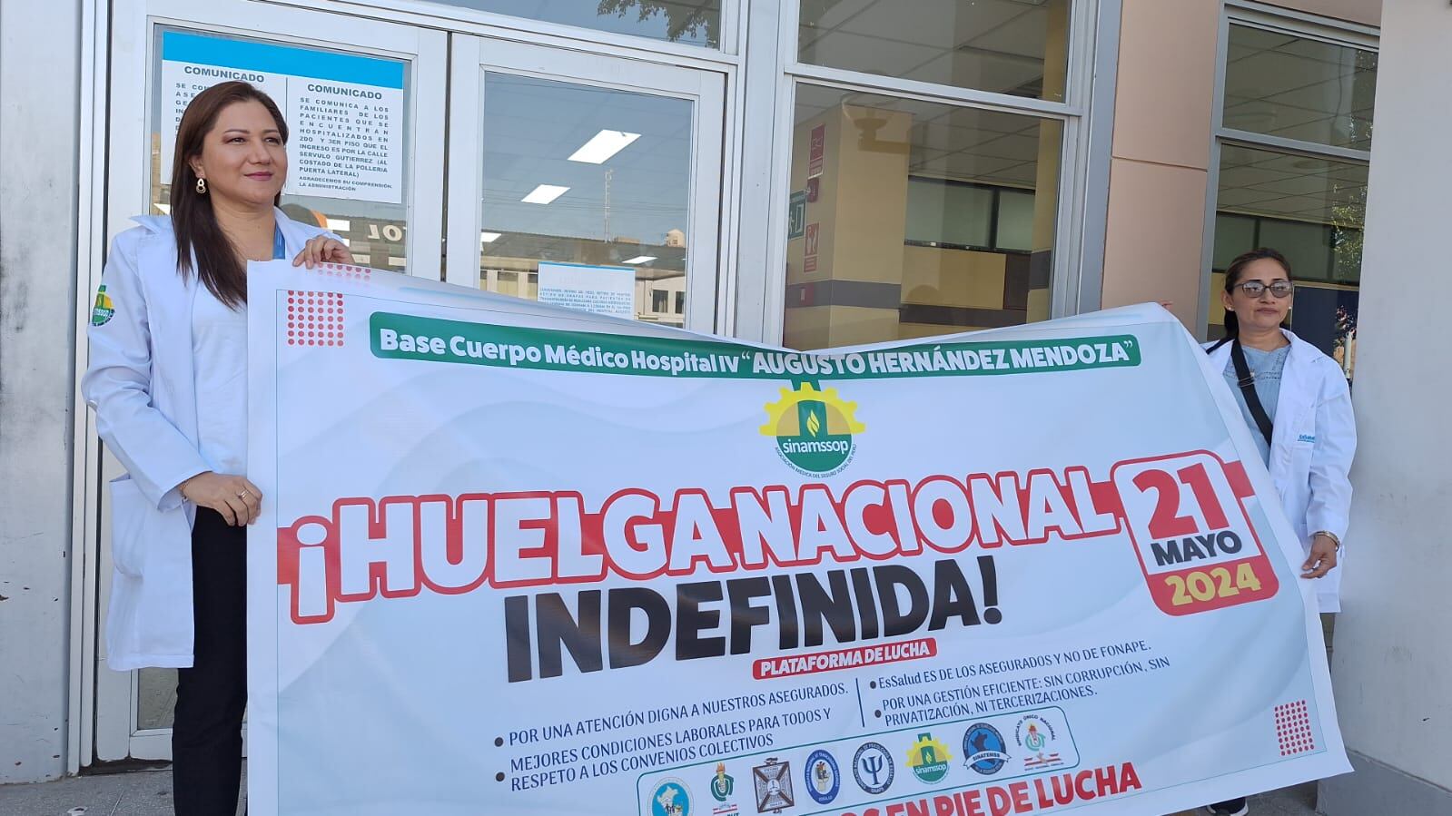 Se explicó que por la huelga, los médicos estarán ausentes en los consultorios externos y algunas operaciones, sin embargo, las áreas de emergencia y otros ambientes prioritarios de salud continuarán atendiendo en beneficio del asegurado.