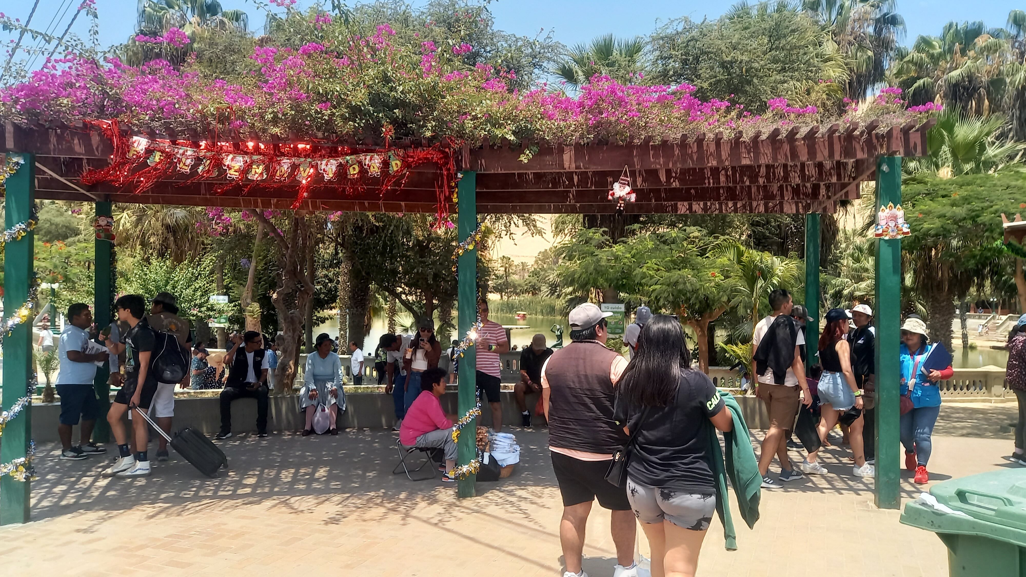 Ayer, el reconocido oasis de América, captó a miles de visitantes, quienes llegaron desde las regiones de Lima, Cusco, y otras provincias como Chincha, Palpa y Nasca, a disfrutar del atractivo turístico natural, algunos visitantes señalan que pasan las fiestas de Año Nuevo hasta por tercera vez en la región iqueña.