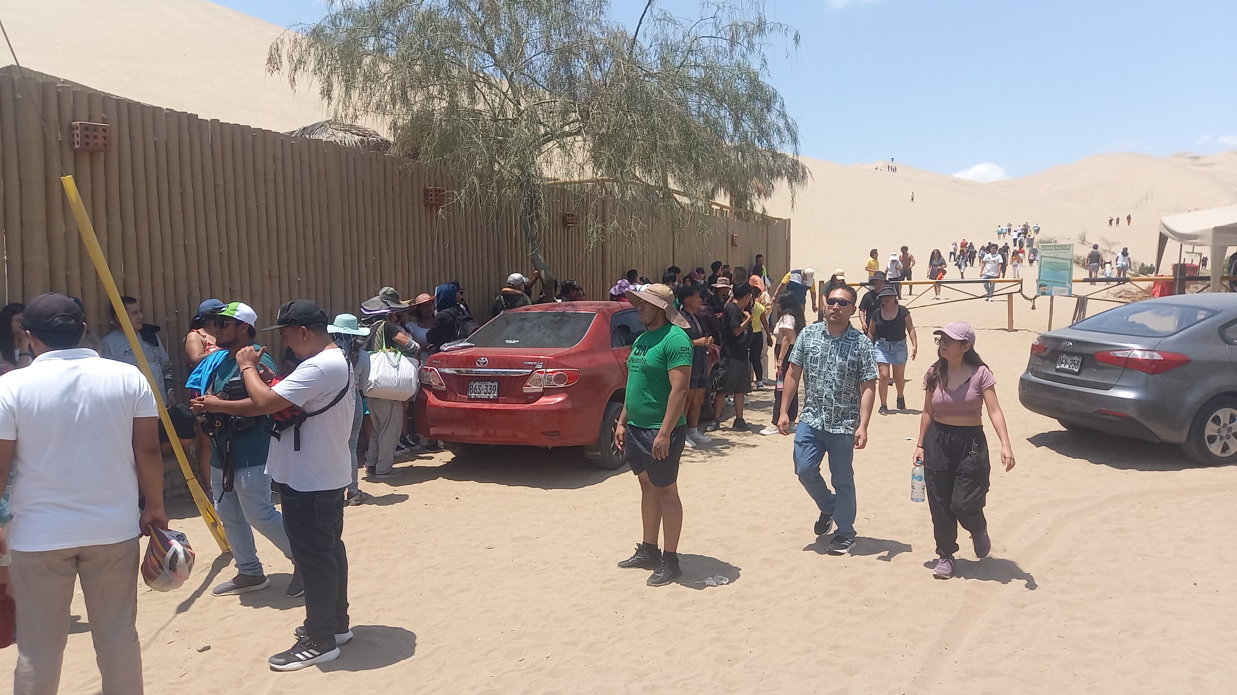 Más del 90% de turistas fueron nacionales (Lima y otras regiones), quienes quedaron asombrados por las imponentes dunas del desierto de Huacachina, por ello hacían largas filas para poder subir y disfrutar de la zona natural.
