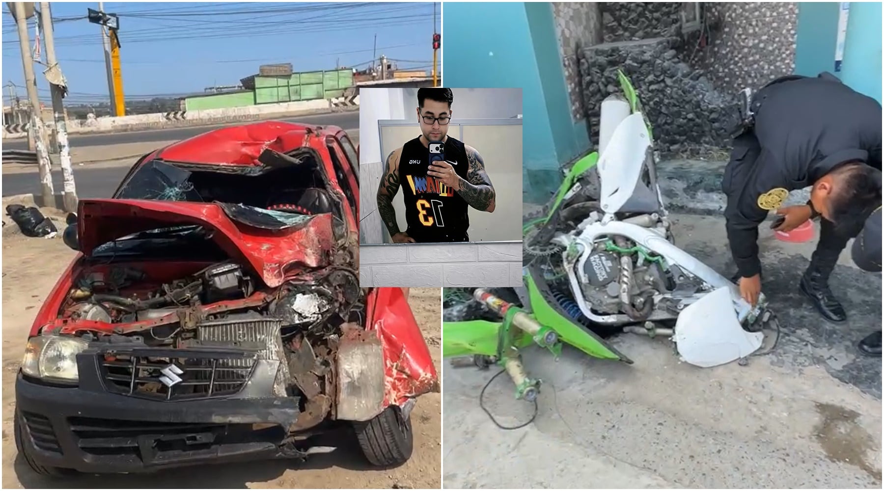 La fuerza del choque fue devastadora. La motocicleta quedó partida en dos y el automóvil de placa F1E-099 terminó con severos daños en la parte delantera, evidenciando la brutalidad del impacto. Testigos indicaron que el vehículo menor circulaba con dirección a su centro de labores cuando fue embestido repentinamente.