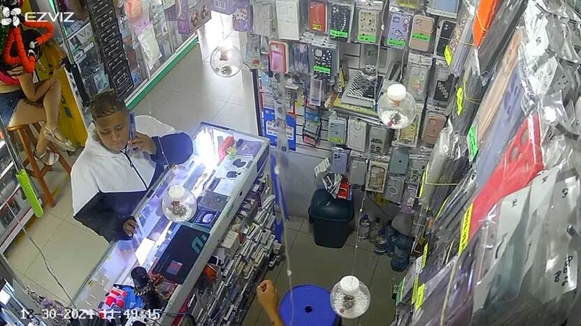 A pesar de la presencia de cámaras de seguridad, la mujer, vestida con una casaca blanca y negra, simuló una llamada con el supuesto dueño del local para convencer al trabajador de que le entregara los dispositivos bajo el pretexto de mostrarlos a un cliente.
