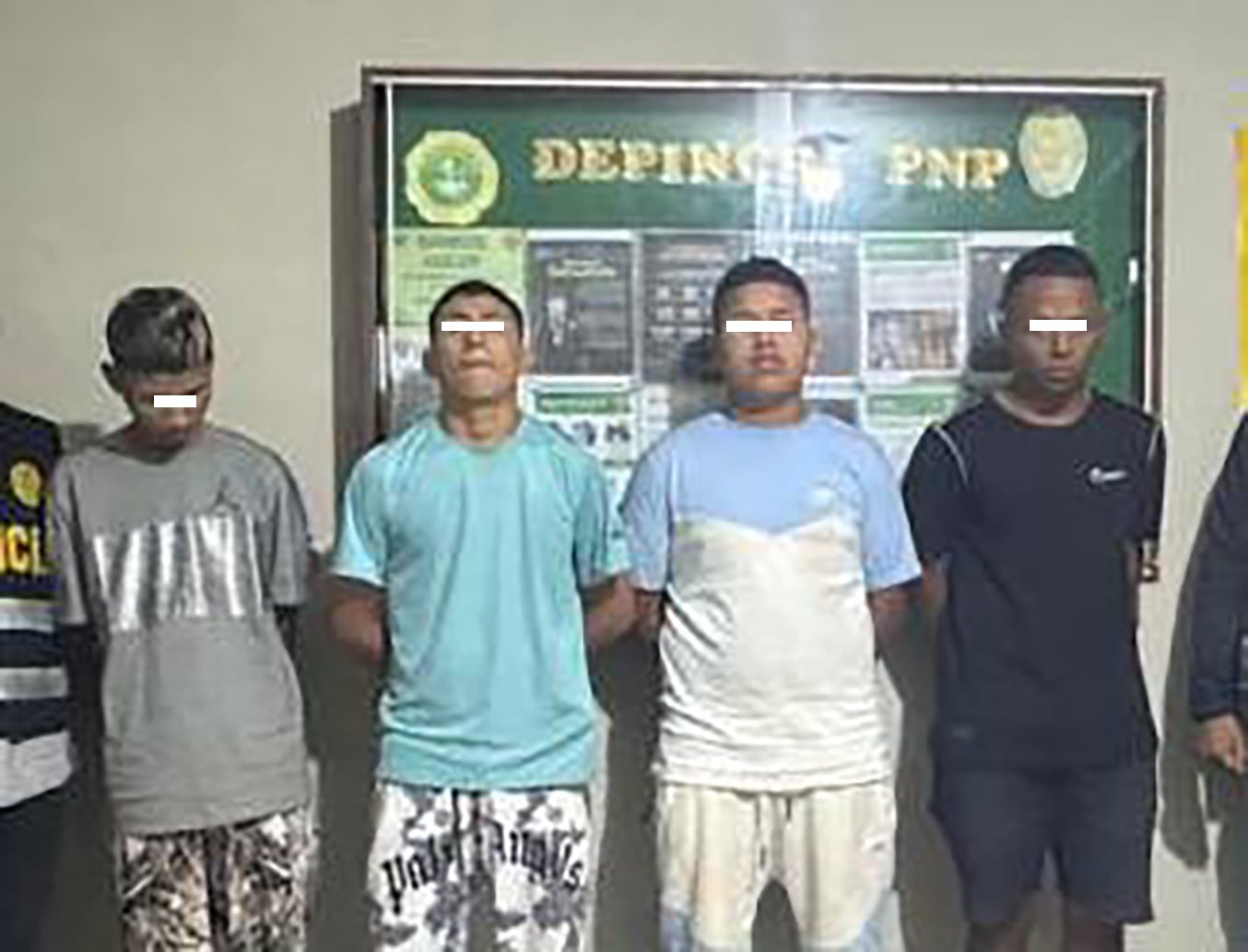 Posteriormente, siendo las 6:50 de la noche aproximadamente, se obtuvo la detención de tres sujetos, quienes se encontraban en Villa Toledo Lote-24, Los Aquijes – Ica (Cooperativa Villa de Valverde), siendo identificados con las iniciales de C. H. (a) “Pecoso”, G. V. (a) “Henrit” y J. A. (a) “Jairo”.