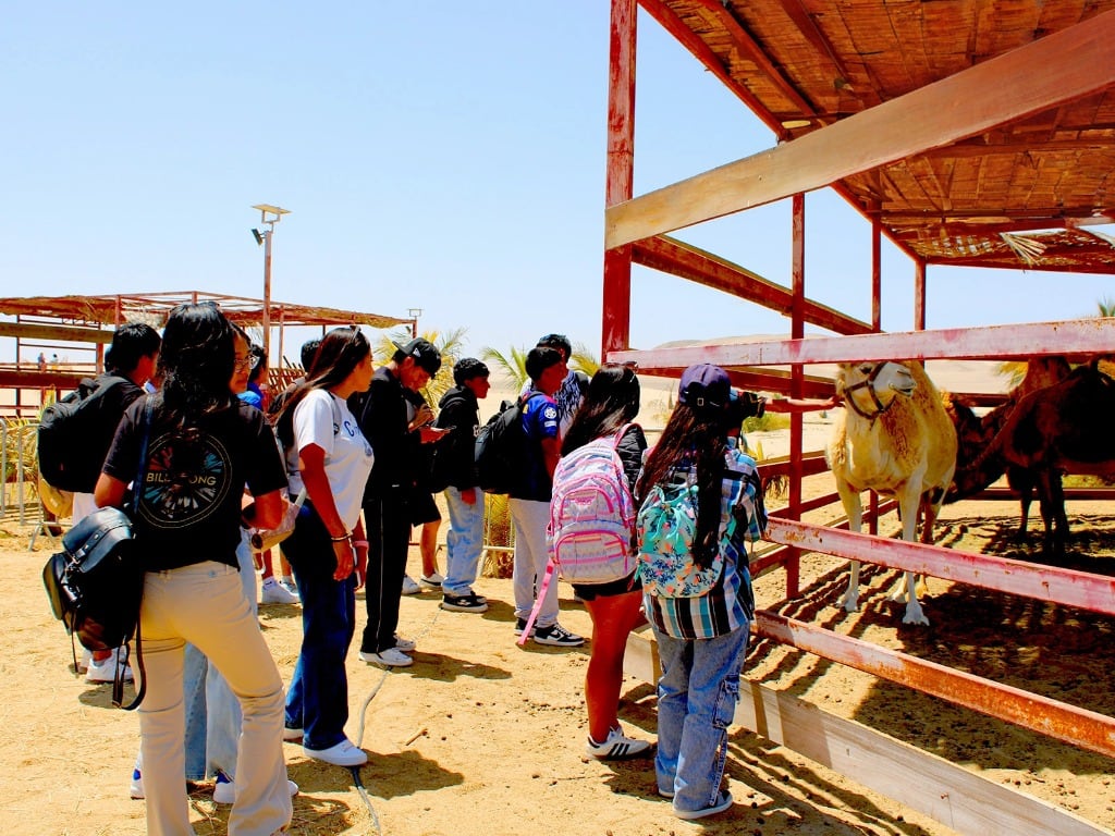 La actividad reunió a los alumnos de la I.E. Juan Pablo Fernandini, quienes realizaron un recorrido por las diferentes áreas recreativas, aprendiendo sobre el cuidado de los dromedarios y participando en dinámicas diseñadas para reforzar valores como la convivencia, la socialización y la inclusión.