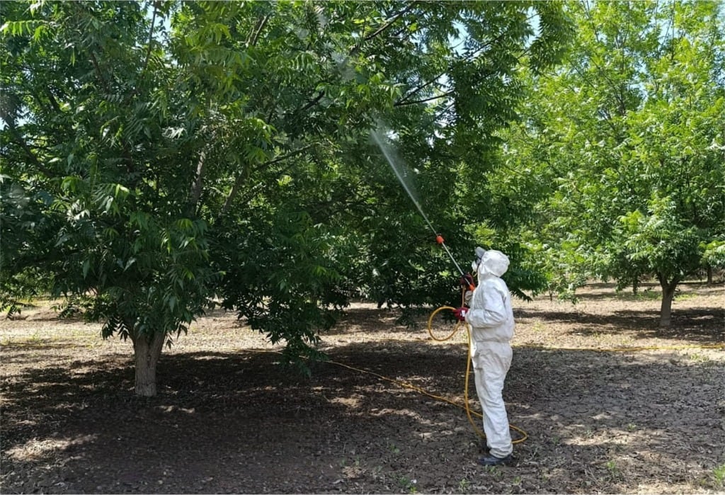La Dirección Regional Agraria (DRA) Ica, a través de la Agencia Agraria Ica, en colaboración estratégica con la empresa agroquímica Farmex, llevó a cabo un ensayo de campo para evaluar la eficacia de un producto químico innovador en el control del Pulgón Amarillo de Márgenes Negros (Monellia caryella) en cultivos de pecano, con la particularidad de que busca proteger a los insectos benéficos presentes en el ecosistema del cultivo.