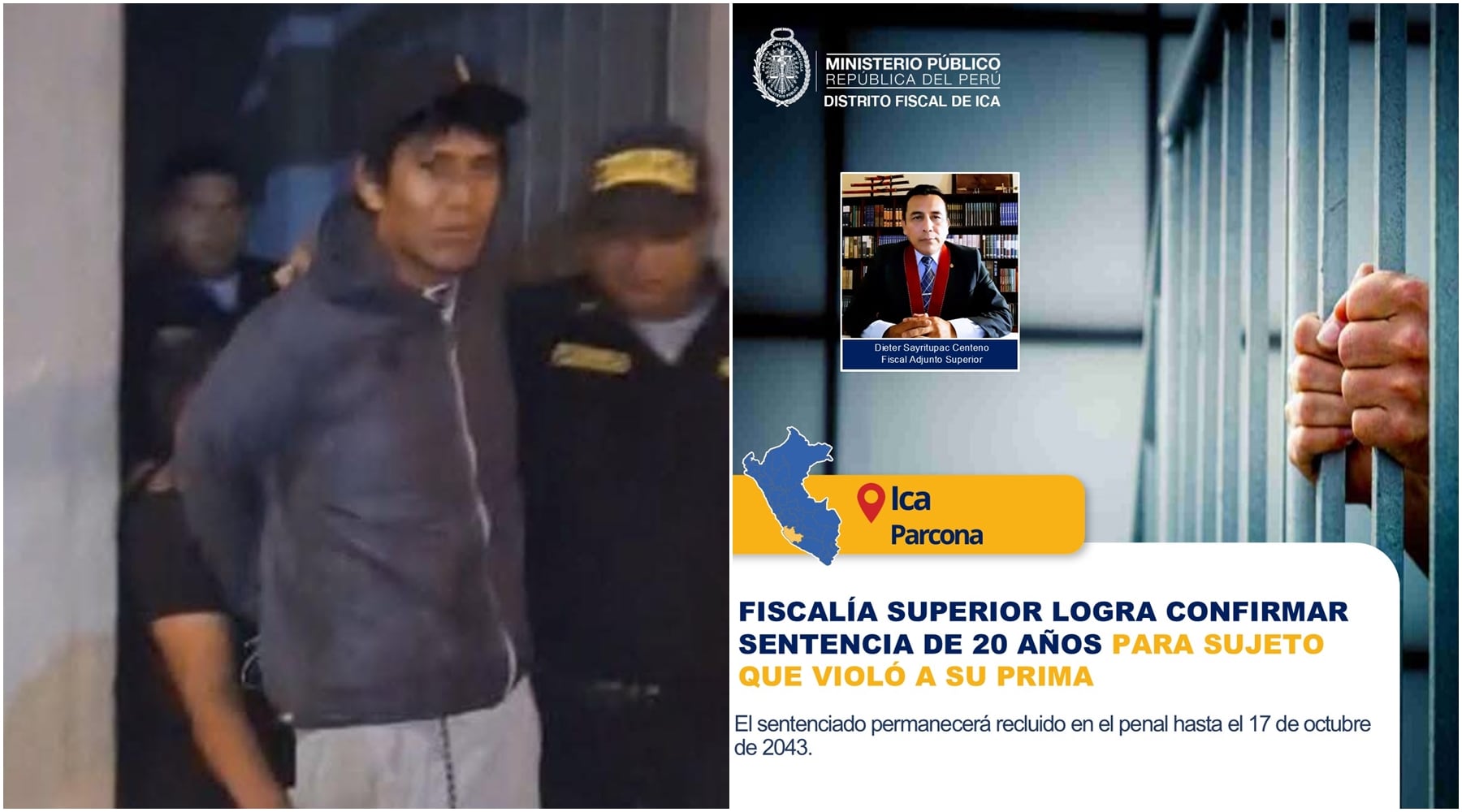 La Segunda Fiscalía Superior Penal Transitoria de Chincha – sede Ica, logró confirmar 20 años, 10 meses y 5 días de pena privativa de libertad efectiva contra Julio Ángel Marquina Castro, por violar a su prima menor de 14 años de edad.
