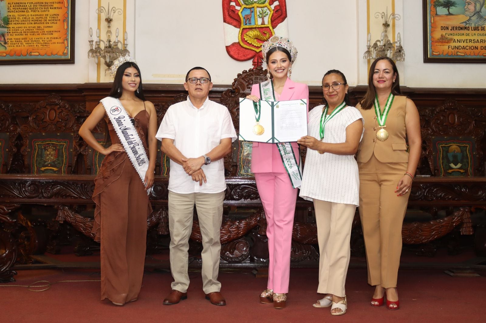 En una ceremonia oficial realizada en el Salón Consistorial del Palacio Municipal de Ica, la modelo peruana Natalia Calmell del Solar fue distinguida como Huésped Ilustre, en reconocimiento a su reciente coronación como Miss Mesoamérica Internacional 2026.