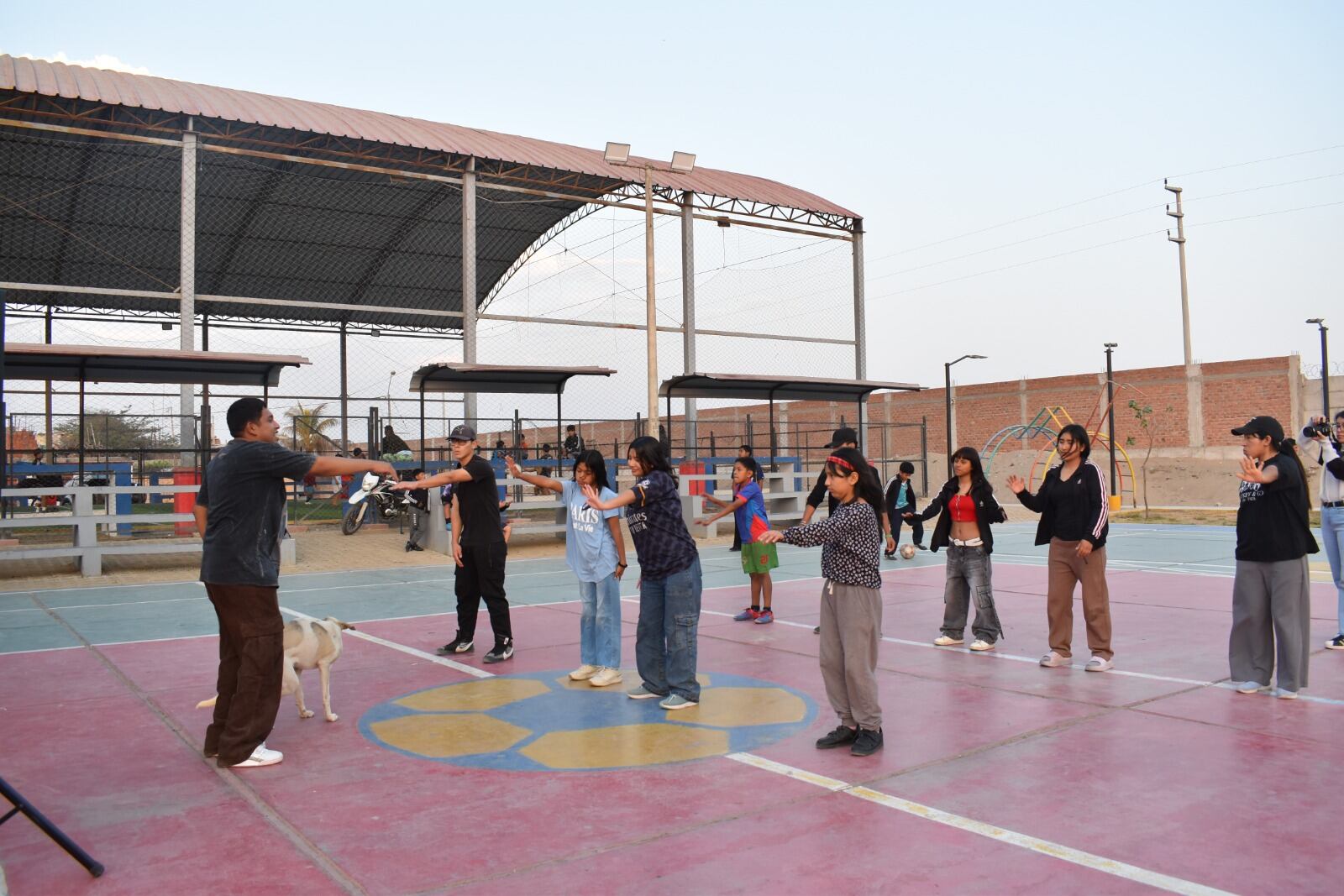 Con energía, se relanzó el Taller de Baile en la loza deportiva del Centro Poblado Villa Rotary Nueva Esperanza (Salas). La actividad contó con la presencia de la regidora Nancy Becerra, en representación del alcalde distrital, así como representantes de la Asociación Perú Mejor y el Grupo Vanguard Internacional.
