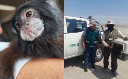 Gracias a una denuncia ciudadana, personal del Servicio Nacional Forestal y de Fauna Silvestre (Serfor) rescató a un mono pichico (Leontocebus sp.) que era mantenido ilegalmente como mascota en la playa Carhuaz, en Ica.