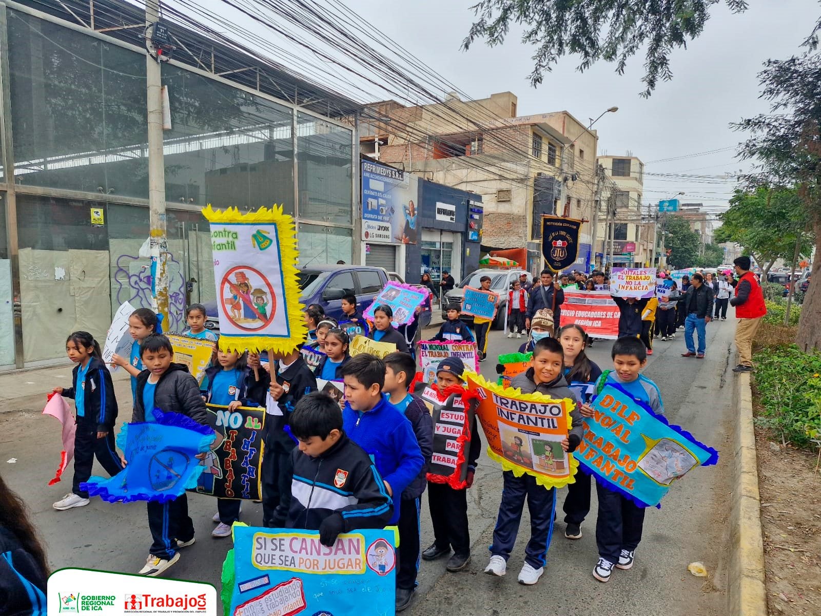 Con motivo del Día Mundial contra el Trabajo Infantil, se llevó a cabo un pasacalle de sensibilización en la ciudad de Ica, con el propósito de concienciar a la población sobre la urgente necesidad de prevenir y erradicar esta problemática que vulnera los derechos fundamentales de miles de niños y niñas.