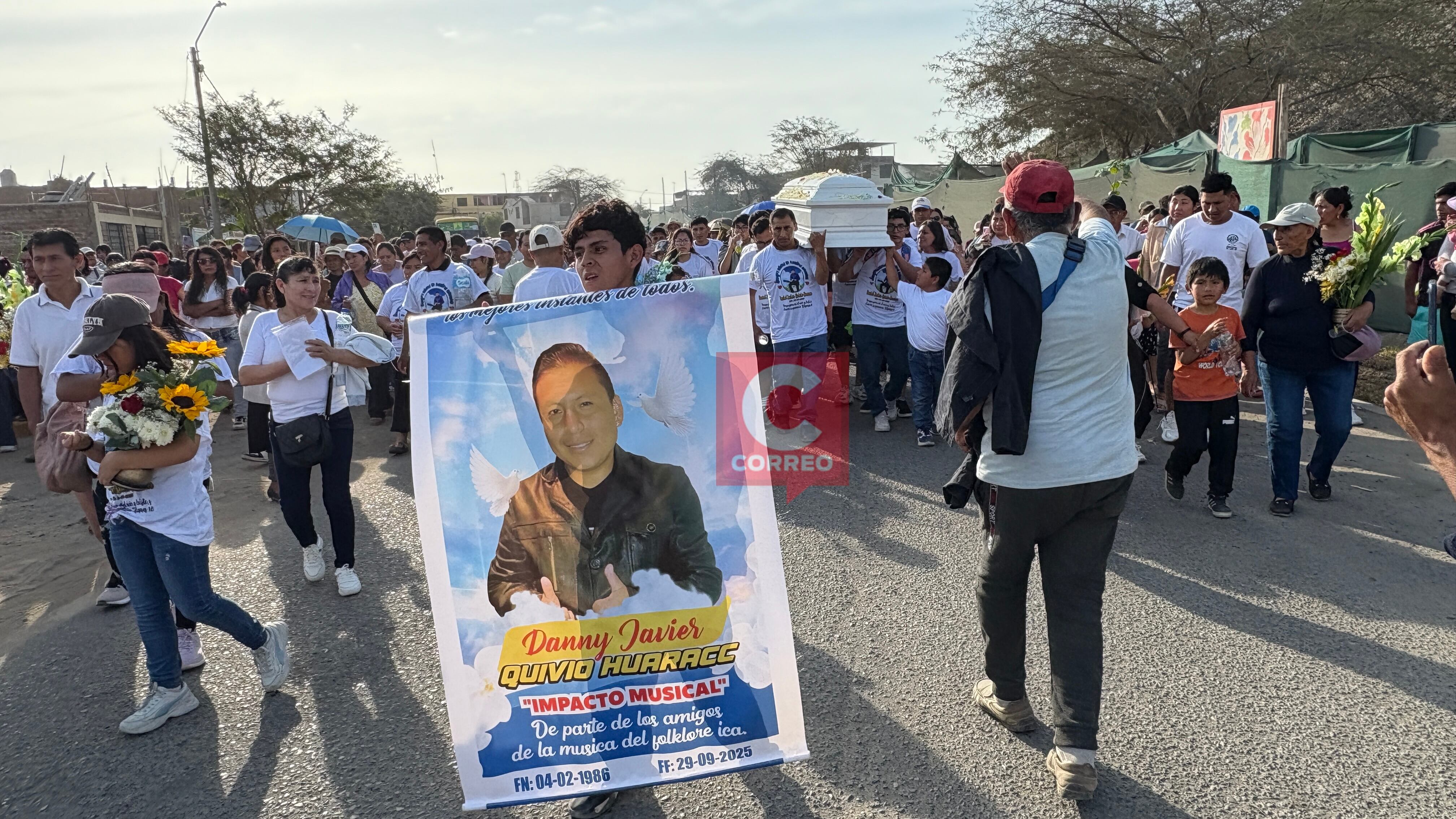 En tanto, en el camposanto de Parcona, el padre de Daniel Quivio, rompió en llanto al exigir justicia: “Mi hijo no era delincuente. Era un hombre humilde, trabajador. No puede ser que lo maten así. Pido que la Policía ronde las calles, que nos proteja”. Vestido de blanco con la foto de su hijo, don Simeón despidió al joven que siempre soñó con triunfar en la música.