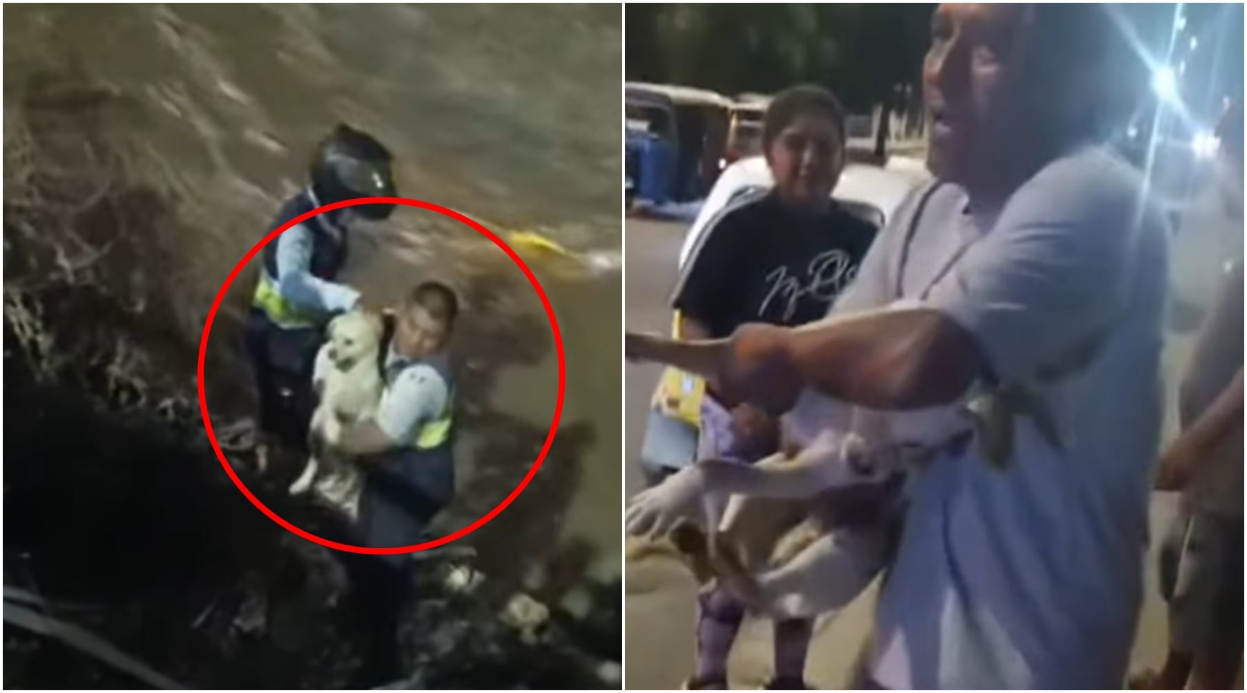 Agentes del serenazgo del distrito de Parcona descendieron hasta la ribera para auxiliar al animal. Uno de los efectivos ingresó al cauce y logró rescatar al perro, de color blanco, que se encontraba atrapado y desorientado por la corriente. El can fue retirado sano y salvo, sin presentar lesiones de consideración.