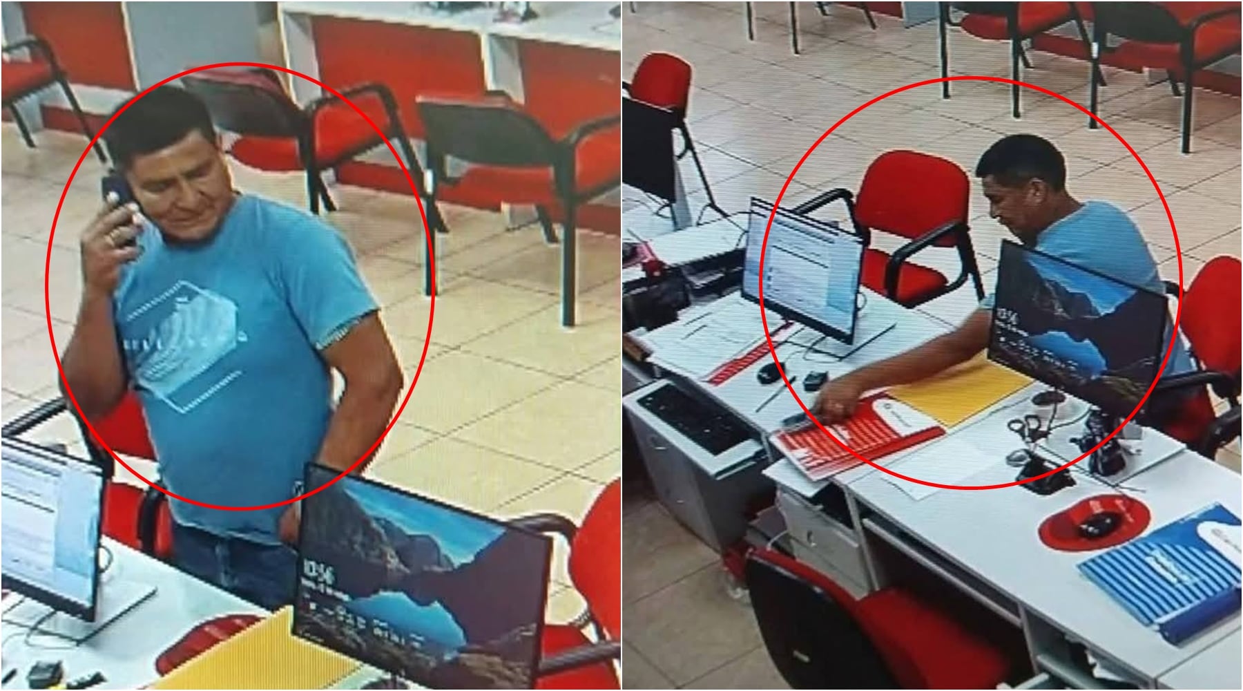 El sujeto simula luego conversar por teléfono y se lleva el equipo electrónico, huyendo con dirección desconocida. En rede sociales se compartió la imagen, para que se pueda identificar al responsable.