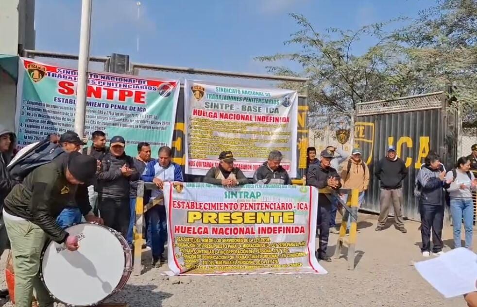 Los agremiados al Sindicato Nacional de Trabajadores Penitenciarios del Perú (SINTPE-INPE) en Ica, ayer realizaron un plantón en los exteriores del penal de Cachiche, reclamando incremento salarial y beneficios laborales.