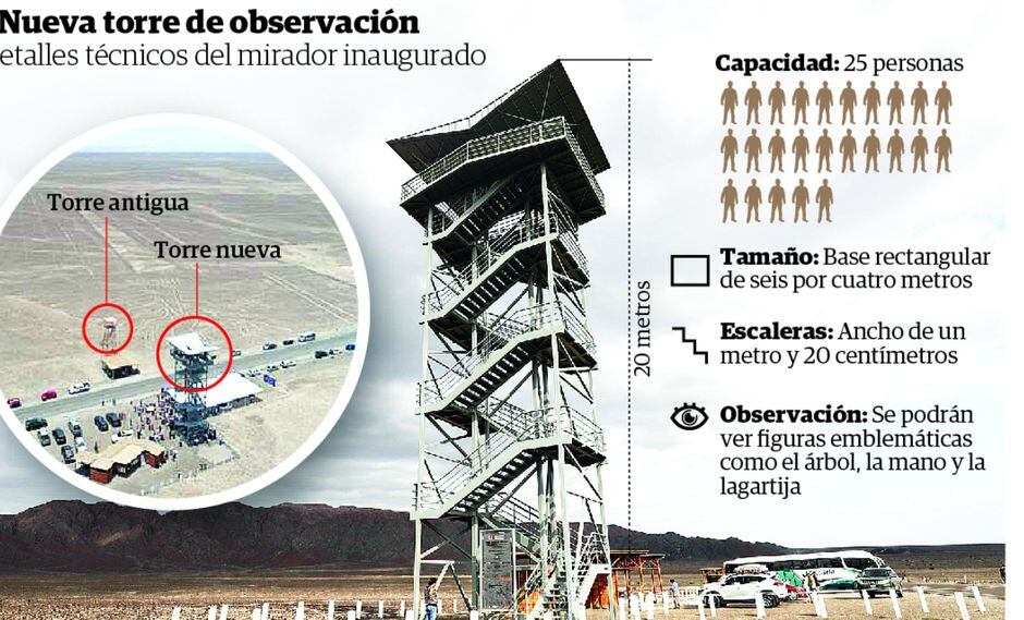 La torre metálica de observación tiene una altura de 20 metros y cuenta con una capacidad para 25 personas (ver infografía).