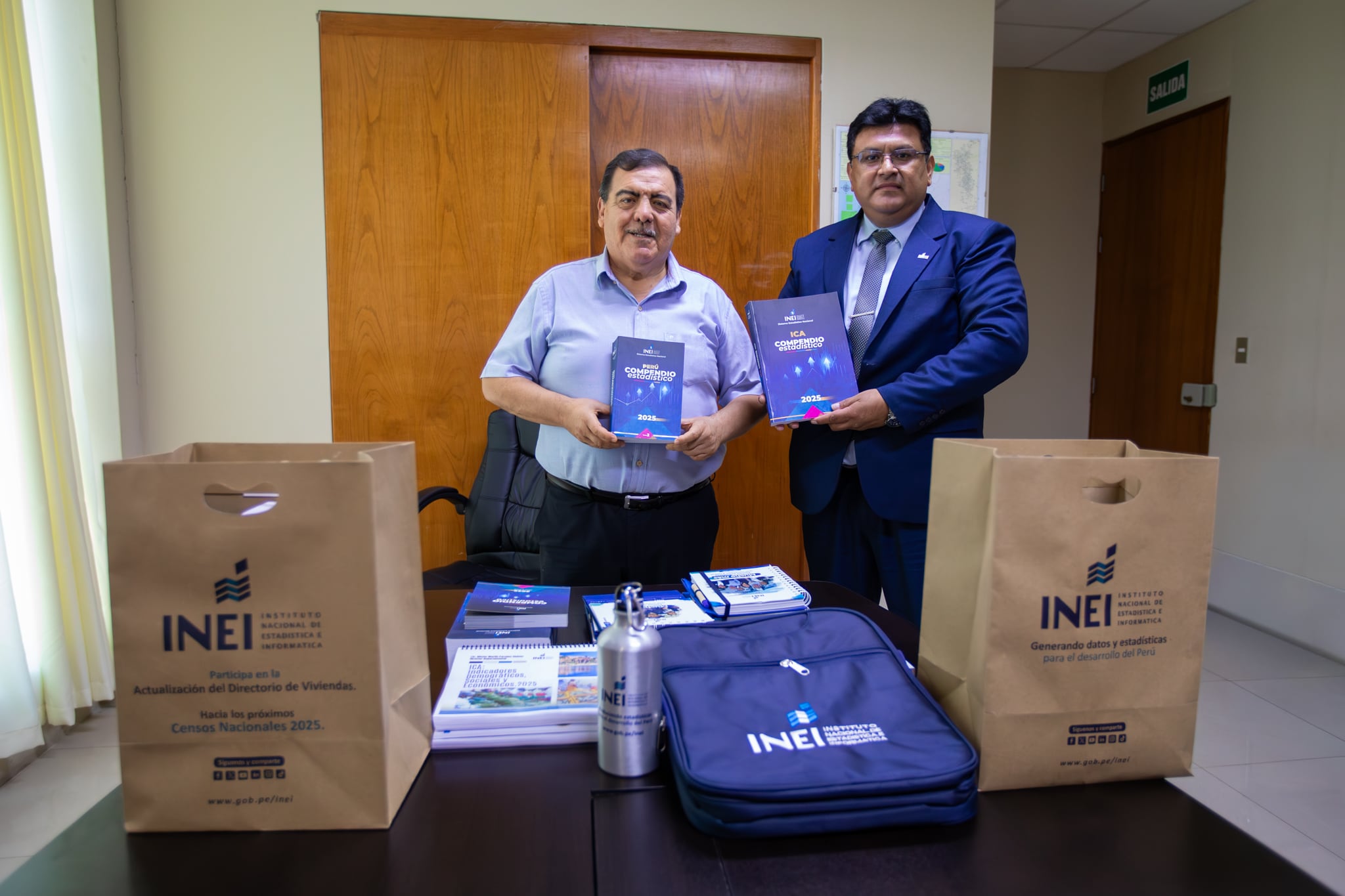 El Instituto Nacional de Estadística e Informática (INEI) entregó al Gobierno Regional de Ica el Compendio Estadístico 2025, documento que proporciona información detallada sobre la realidad poblacional, económica y social de la región. La entrega se realizó durante la visita del director departamental del INEI en Ica, Héctor Martín Paredes Chávez, acompañado por los analistas Edson Álvarez Uchuya, Cynthia González Murguía y Rebeca Legua Flores.
