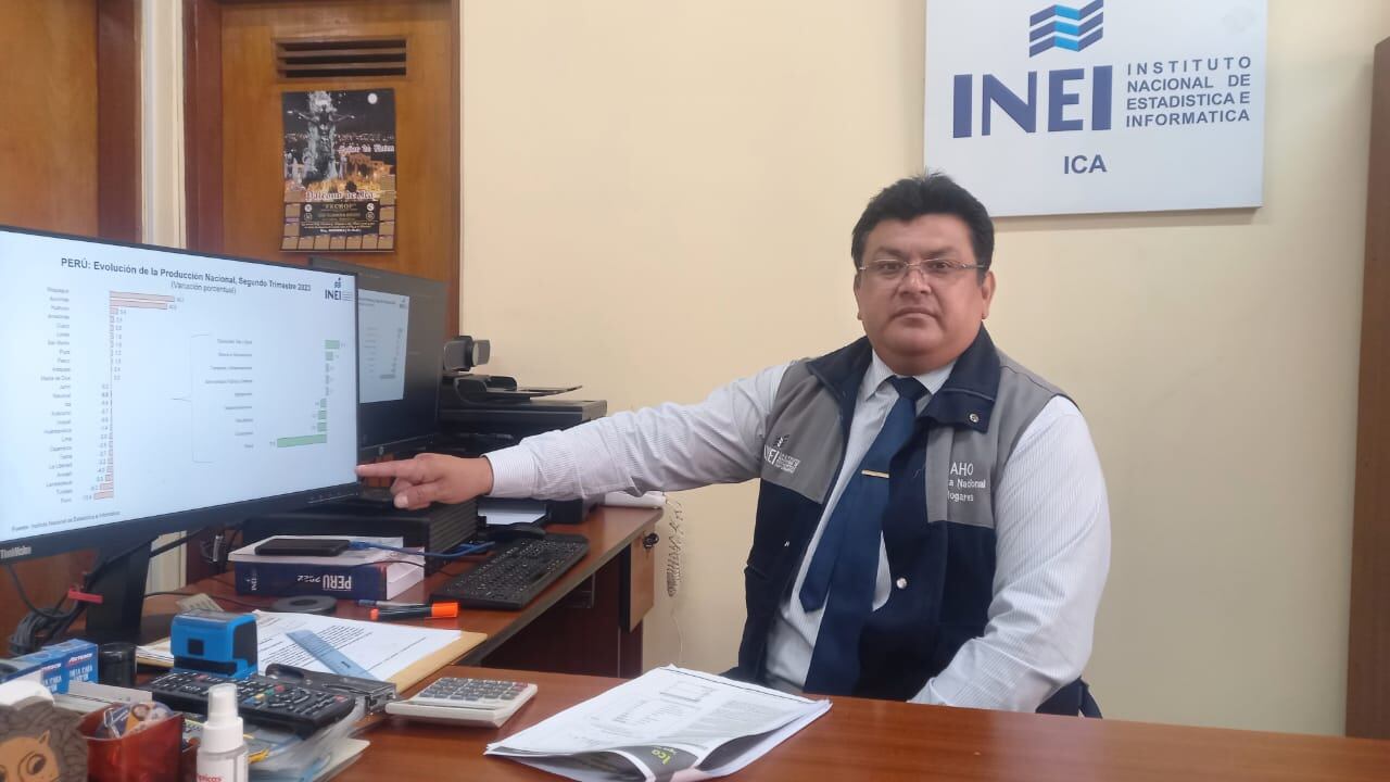 “La producción nacional tuvo una variación porcentual negativa, en mayo fue de -1,32%, en junio de -0,56%, julio con -1,29% y agosto con -0,63% y la teoría dice si tenemos más de tres o tres meses de una variación negativa, ya es recesión y es justamente de lo que se está hablando, y en el departamento de Ica, la variación porcentual también es negativa del 0,6%, y estamos por debajo de la producción nacional que es -0,5%, se ha disminuido en telecomunicaciones, porque los usuarios de líneas telefónicas han optado por planes más económicos y se ha dejado de contratar el servicio de televisión por cable, también el sector manufactura, porque ha disminuido la producción de harina, de aceite. En construcción, la población ha dejado de construir viviendas o hacer algún tipo de mejoramiento, y en la pesca, por la nula producción de anchoveta en los puertos de la región Ica”, declaró.