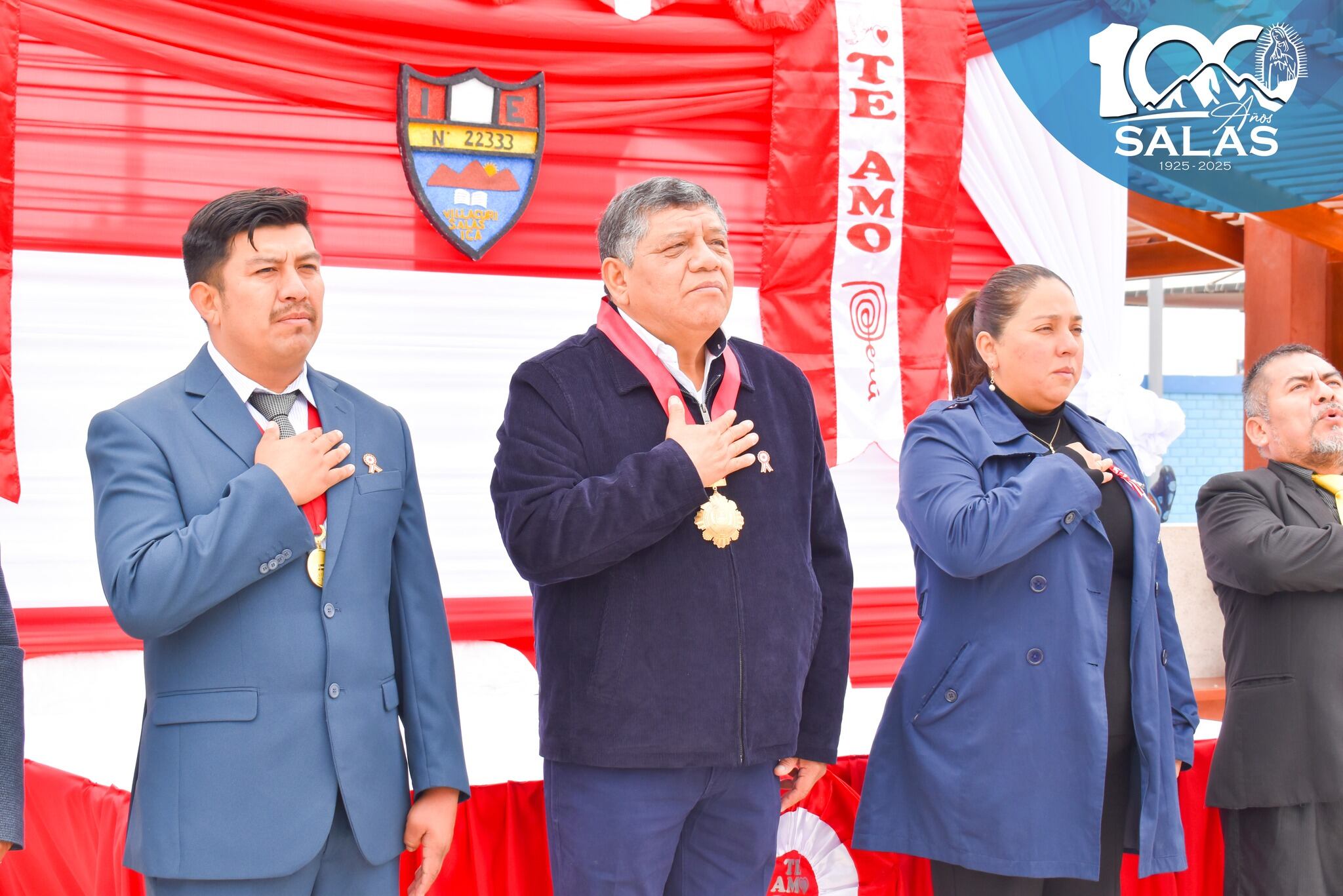 El acto contó con la presencia del alcalde del distrito de Salas, Javier Fernández Matta, el regidor Jesús Santisteban Molina, el Sub Prefecto del Distrito de Salas Jorge Donayre Hernández, la Juez de Paz del Distrito de Salas Katherin Aliaga Siguas, un representante de la Policía Nacional del Perú, así como directores, docentes, alumnos y vecinos, quienes se sumaron a esta ceremonia protocolar con gran fervor.