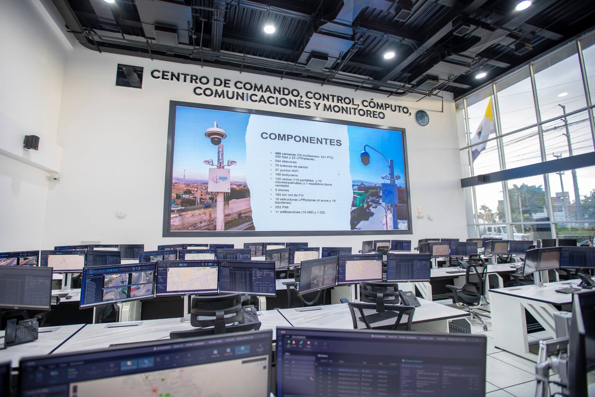Entre los componentes tecnológicos destacan alrededor de 485 cámaras de videovigilancia de alta definición, muchas de ellas equipadas con visión nocturna, reconocimiento facial y zoom avanzado, lo que permitirá una supervisión detallada en tiempo real de puntos estratégicos de la ciudad. Además, el sistema incorpora arcos con cámaras lectoras de placas vehiculares, facilitando la identificación de vehículos en situaciones de riesgo o bajo investigación.