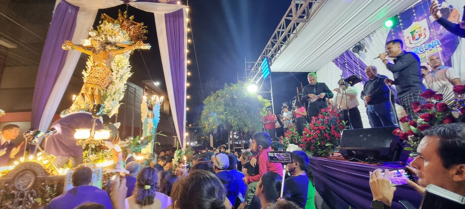 Un imponente homenaje realizó por primera vez la Municipalidad Distrital de Marcona, en la procesión del Señor de Luren. La institución municipal se posicionó en la avenida San Martín frente a Plaza del Sol. Donde se armó un destacado arco floral, también una alfombra por varios metros y un escenario que tenía múltiples juegos de luces para alumbrar y venerar al Cristo Moreno.