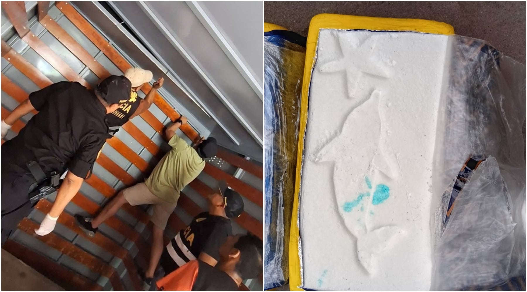 Según la información policial, la droga fue hallada en compartimentos post fabricados en el techo de la carrocería de un camión Fuso de placa BBU-807, tipo furgón, conducido por José Ore Nelson, quien iba acompañado por Julio César Chavarría Granda.