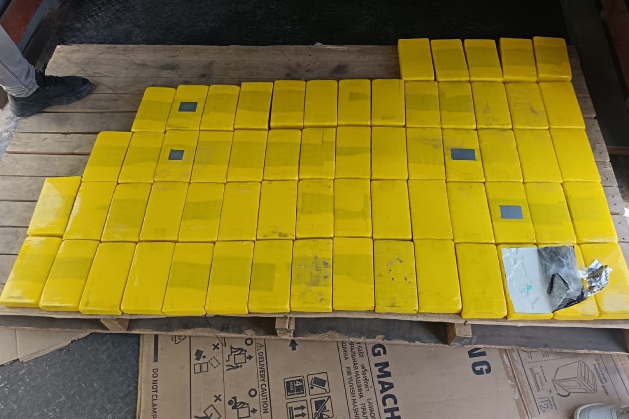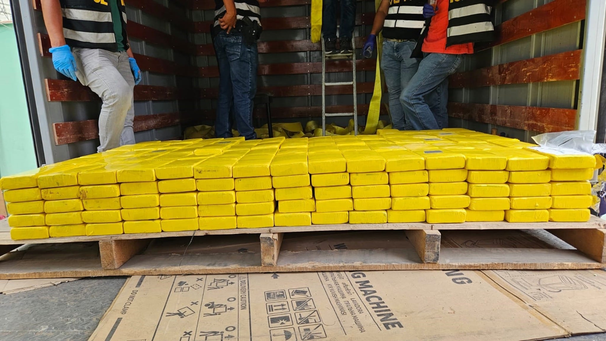 Durante la intervención se halló la sustancia ilícita acondicionada en un total de 430 paquetes tipo ladrillo con logo de delfín, obteniendo un peso bruto de 444.300 kilogramos de clorhidrato de cocaína de alta pureza, ocultos en compartimentos acondicionados en el techo del camión tipo furgón.