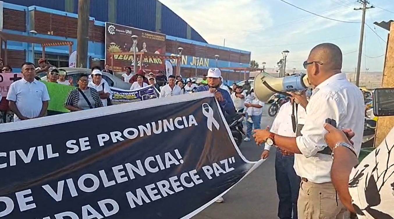 En tanto, vecinos del distrito de Marcona llevaron a cabo una marcha pacífica por las principales calles del distrito, en respuesta a los recientes hechos de violencia que han conmocionado a la comunidad. La movilización se realizó tras la muerte del menor 17 años, la quema de un mototaxi y actos de vandalismo en viviendas de la zona conocida como Ruta del Sol, donde se reportaron saqueos y varios heridos. La criminalidad está vinculado a conflictos por terrenos en el distrito.