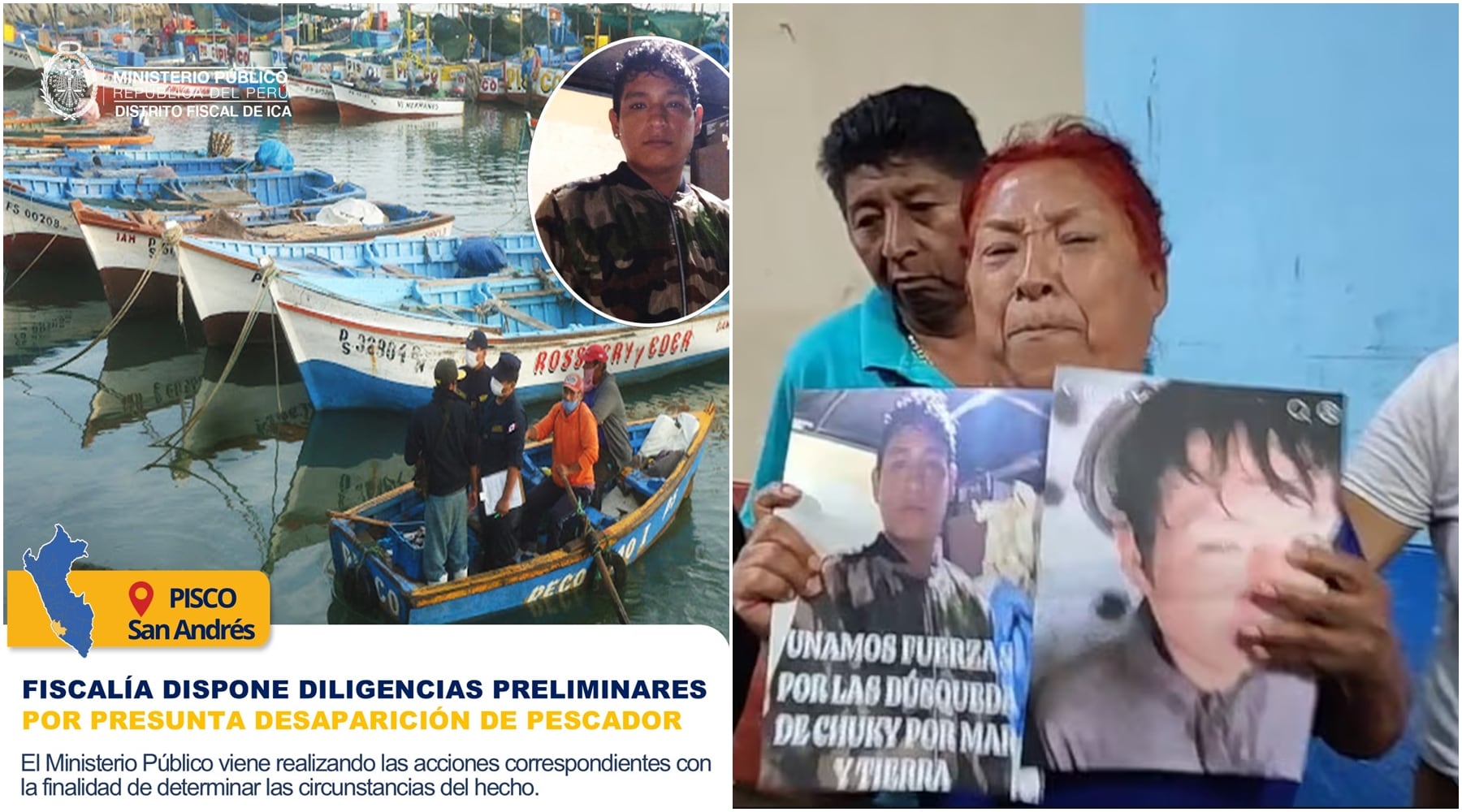 El Segundo Despacho de la Primera Fiscalía Provincial Penal Corporativa de Pisco dispuso la realización de diligencias preliminares a fin de esclarecer la presunta desaparición de un trabajador pesquero en el distrito de San Andrés, provincia de Pisco.