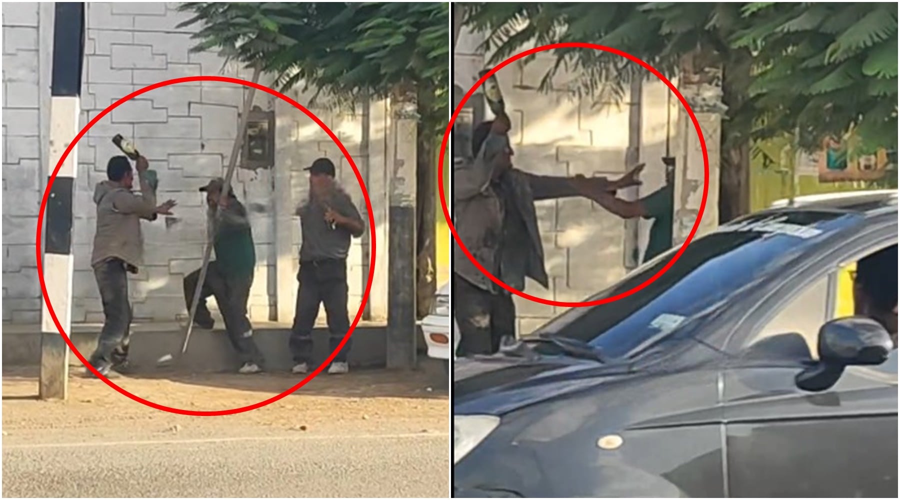 En los registros se observa a varios individuos enfrentándose con botellas de vidrio, en hechos que terminaron dejando a uno de ellos con la cabeza rota y perdiendo abundante sangre. Según vecinos del sector, este tipo de episodios se repite con frecuencia en la zona, donde algunas personas permanecen de manera constante en estado de ebriedad.
